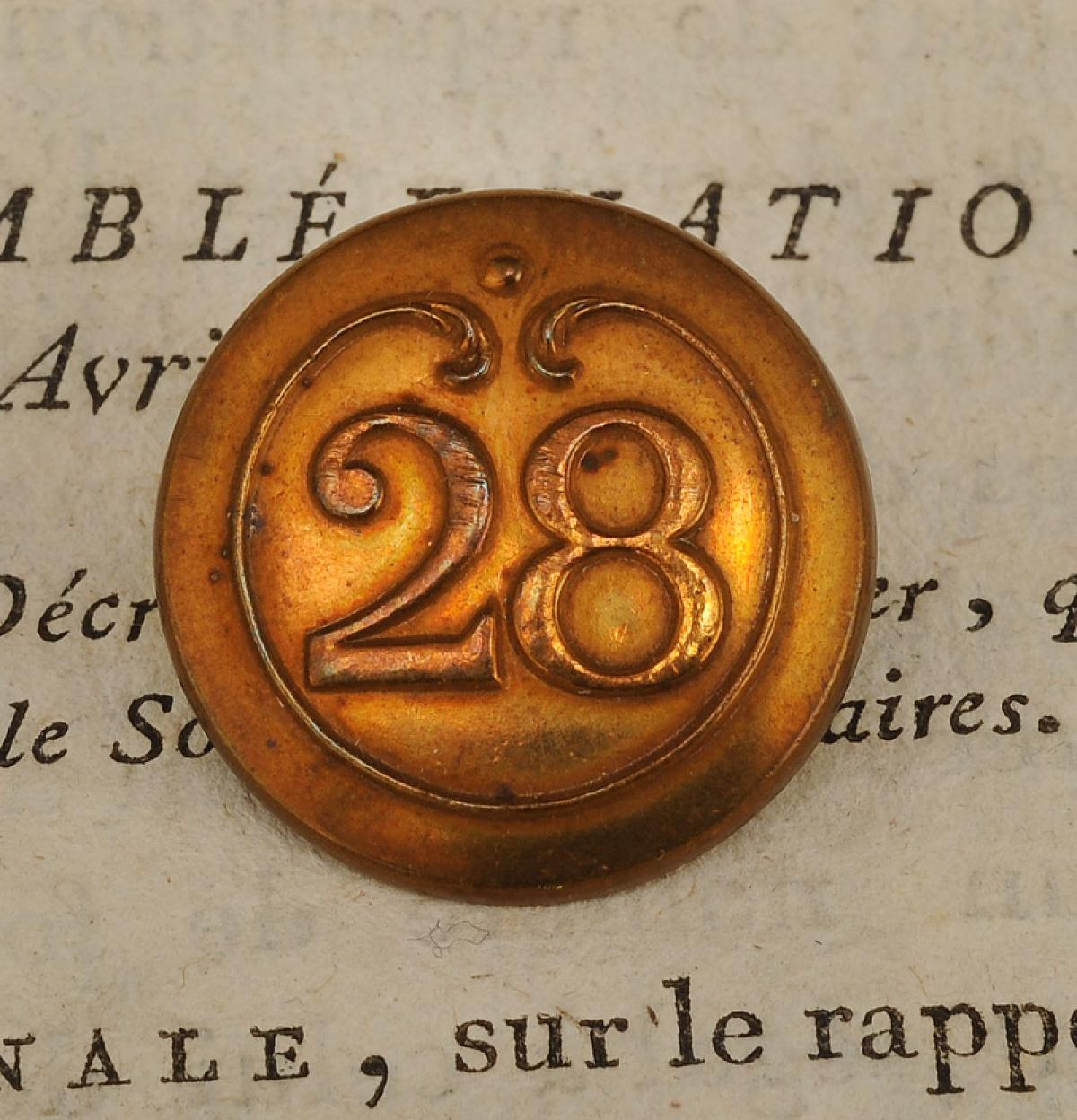 OFFICER BUTTON OF THE 28th INFANTRY REGIMENT, First Empire. 20737-11