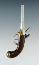 Platine à silex, baguette, canon rond lisse marqué d'une couronne, de lettres (peu visibles) et du chiffre « 82 », longueur 189 mm, longueur avec queue de culasse 216 mm. Baguette à tête de clou.