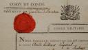 ABSOLUTE MILITARY LEAVE GRANTED TO CLAUDE LIÉBAUT, corporal in the Regiment of Bourbon Grenadiers of the Corps of Condé, May 14, 1801. 18920-1