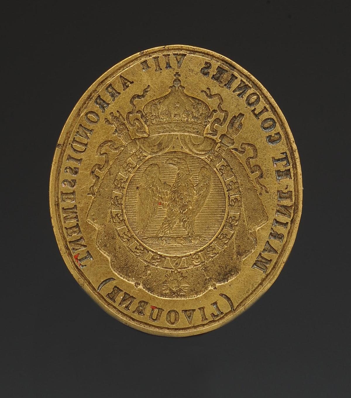 Oval brass seal H 3.5 cm x 3.1 cm, with the Grand Imperial Arms.