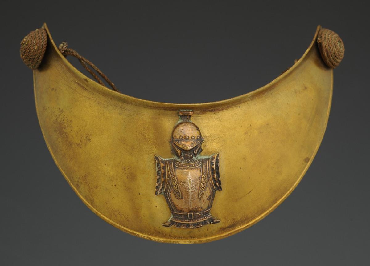 Gilded brass plate with a silvered motif representing a cuirass topped with a helmet. Complete with its buttons.