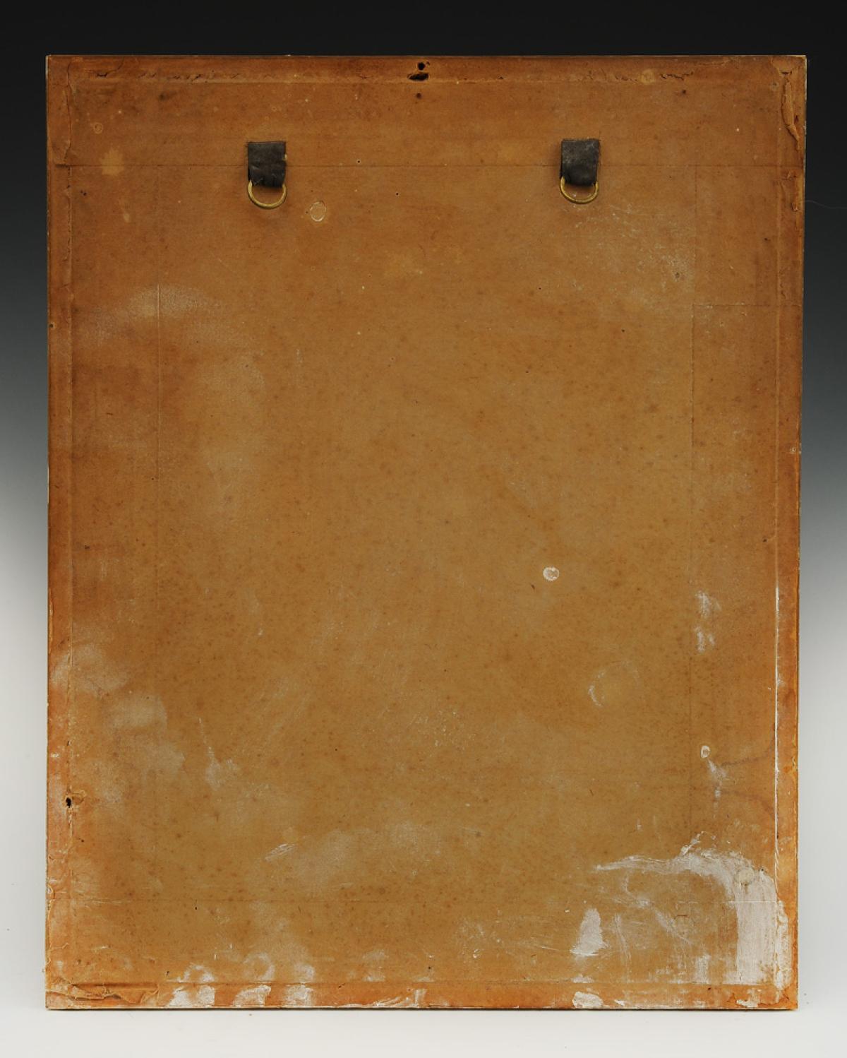 Height 28 cm x width 21.5 cm. Presented under glass in a gilded wooden frame.