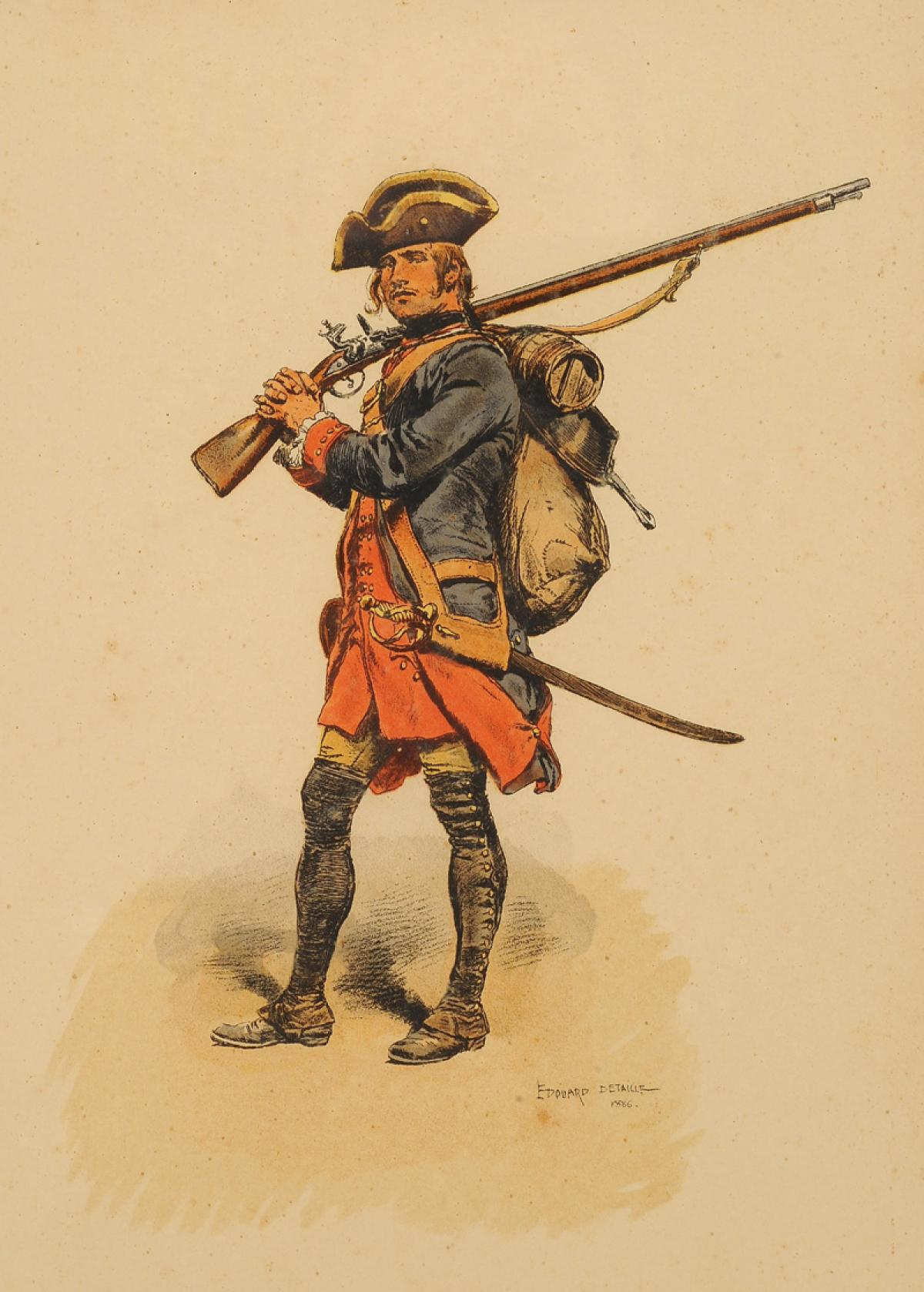 DETAILLE EDWARD - INFANTRY TROOPS OF THE ANCIENT MONARCHY: engraving, Late 19th century. 32889-1
