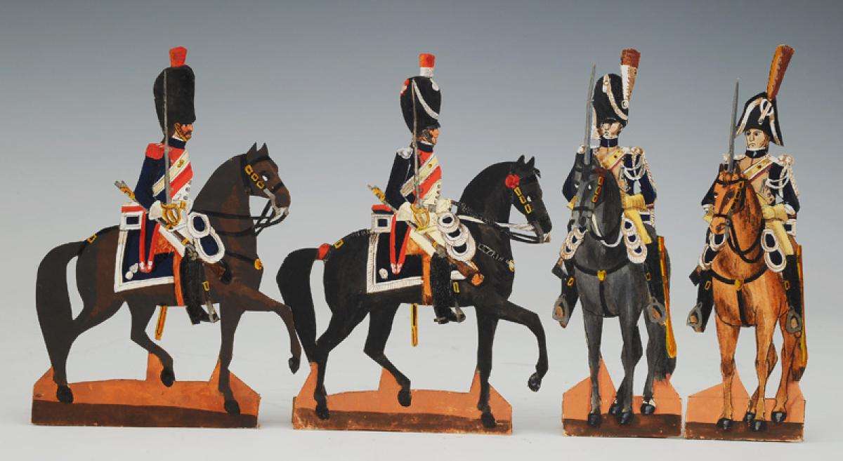 HORSE GENDARMES OF THE CONSULS' GUARD AND THE IMPERIAL GUARD FIRST EMPIRE: STRASBOURG SOLDIERS FIGURINE ON CARDBOARD painted in gouache by the WURTZ family, second third of the 19th century, around 1815-1848. 31156-19