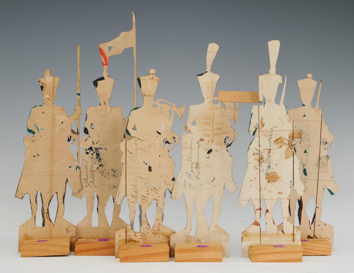Among all these artists, and for this period, the three most well-known are: Thiébaut Borerst (mistakenly spelled Boersch) (1782-1824), a miller who began drawing around 1800, a nephew of the painter Benjamin Zix, whose collection was auctioned off in Angers on March 10, 1971, with his style probably being the most refined that we know of. Eugène Nicollet (1802-1872), who began painting his soldiers as early as 1817 (at the age of 15) and continued for 55 years, with his collection kept at the Compiègne Museum, and his style being more naive. Wurtz, to whom we dedicate a special paragraph. Paul Schmidt, whose each figurine is signed on the back with the name of the soldier as "sketched," with his collection preserved at the Musée de l'Armée in Paris depicting the National Guard soldiers of Strasbourg, among others. Other artists also worked in a similar manner: Frédérik Schmidt (born in 1796). But we can also mention Édouard Kratz (1803-1885), Schmidt's son (born in 1824), Théodore Carl (born in 1837)…