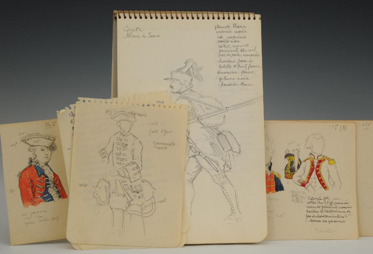 LUCIEN ROUSSELOT - SKETCHBOOK AND STUDIES ON UNIFORMS OF THE OLD MONARCHY, Early 20th century. 33384