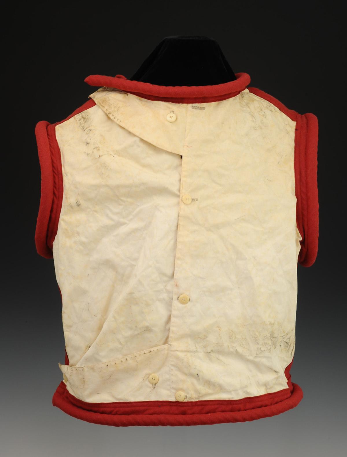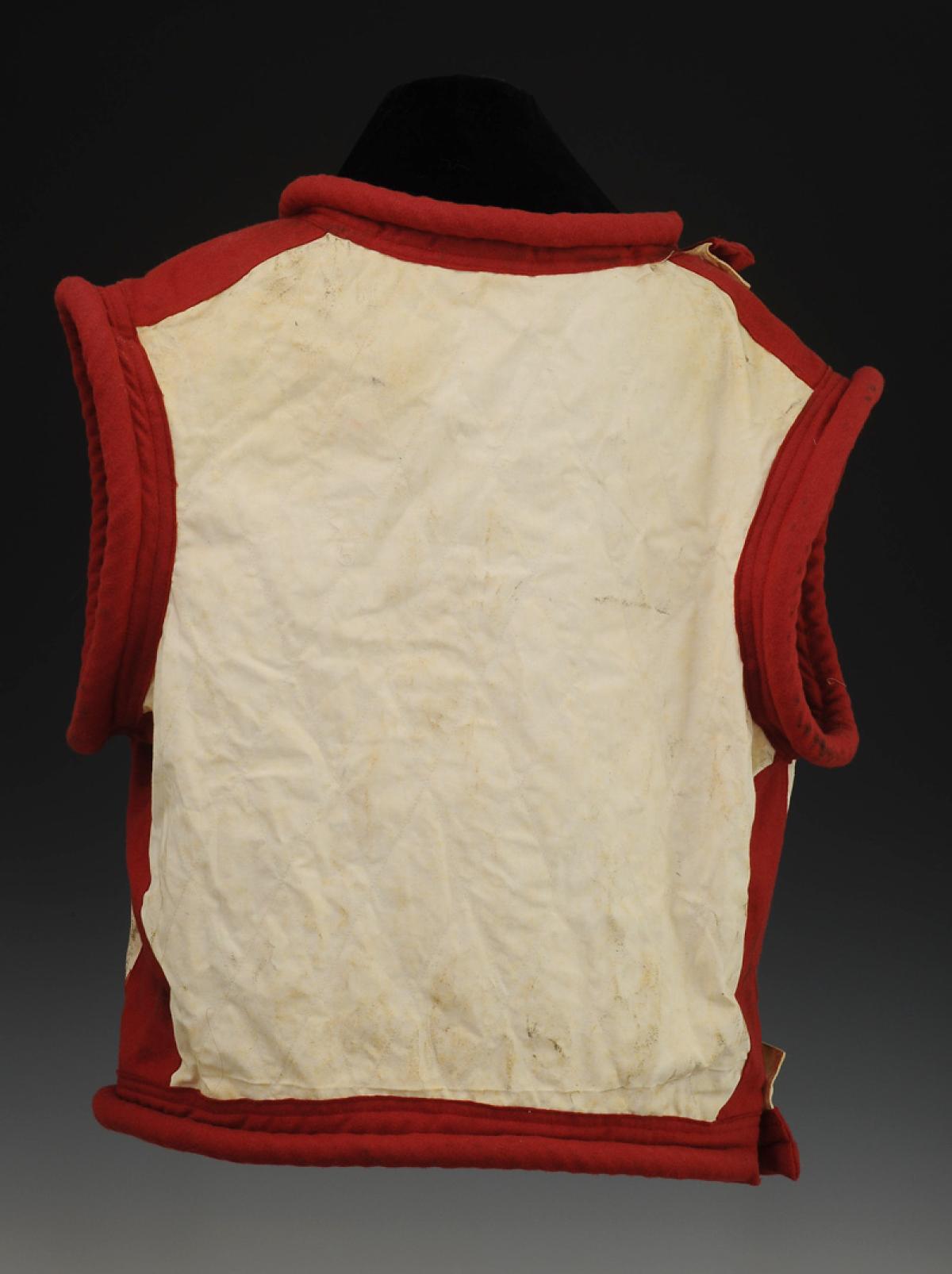 Made of white canvas and scarlet cloth.