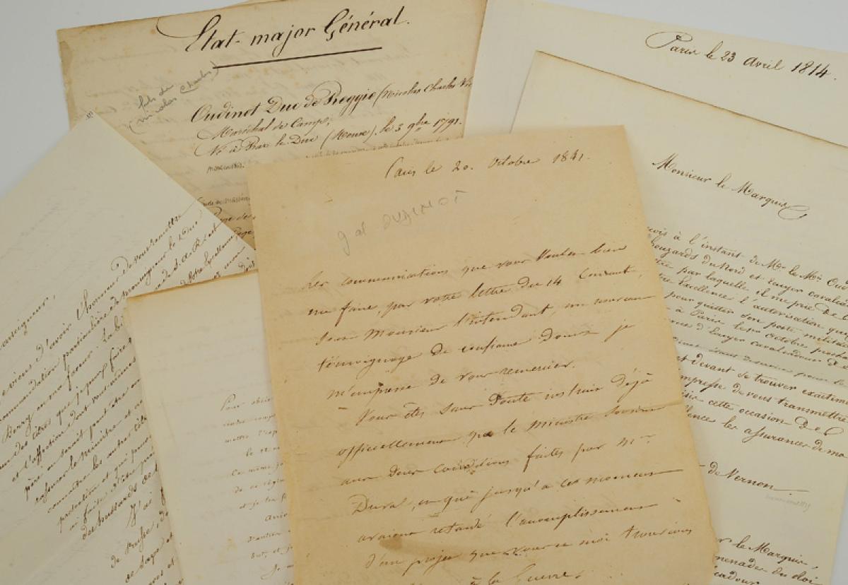 - September 3, 1815: Letter of recommendation signed "Charles Ferdinand" and accompanying letter addressed to the Minister of War regarding this special recommendation from Monsieur le Duc de Berry in favor of him commanding the Guard Hussars regiment.