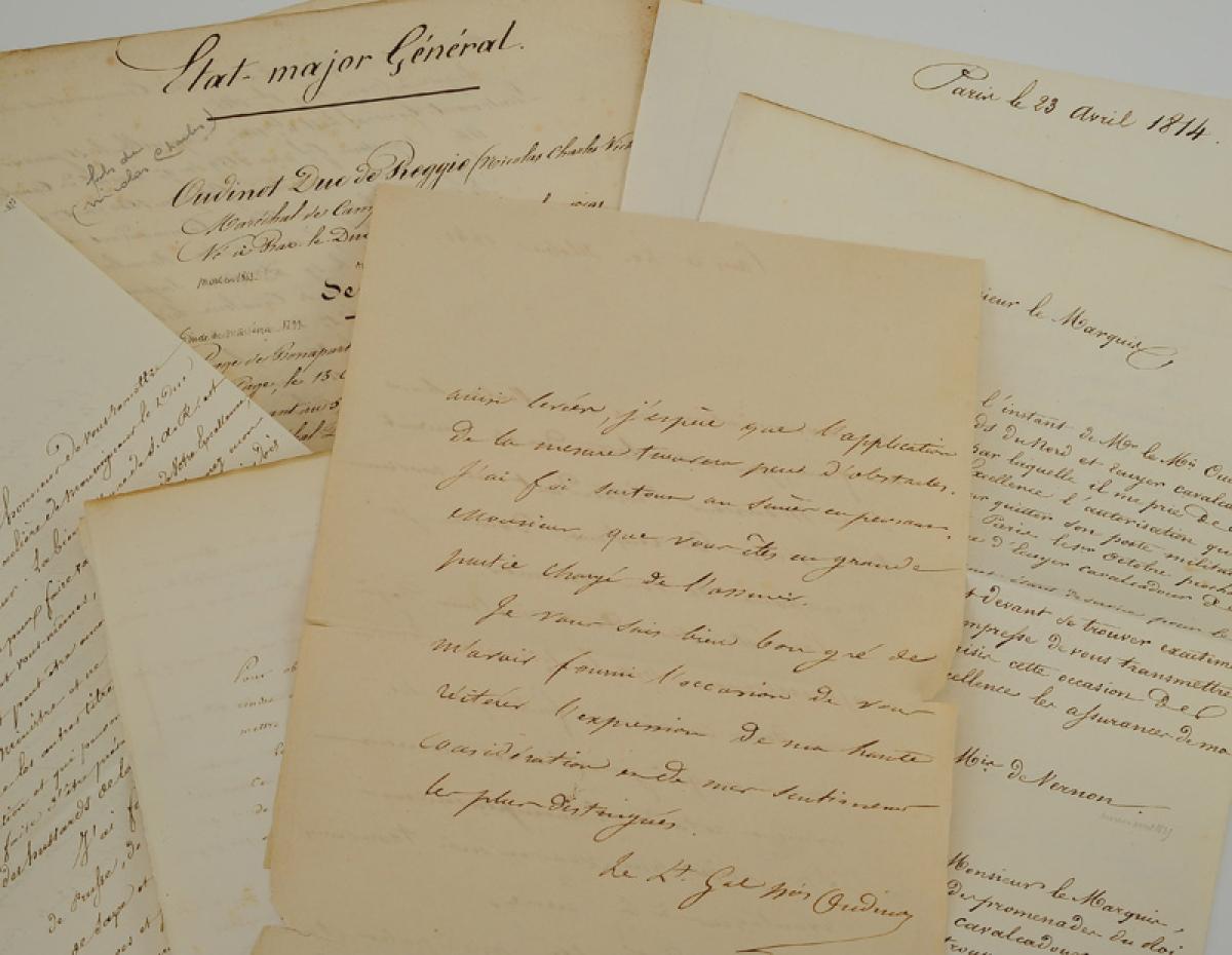 - Letter dated April 23, 1814, addressed by his father, Marshal Oudinot, to S.E. General Count Dupont, who holds the War Department, requesting the appointment of his son to the 25th Dragon Regiment.