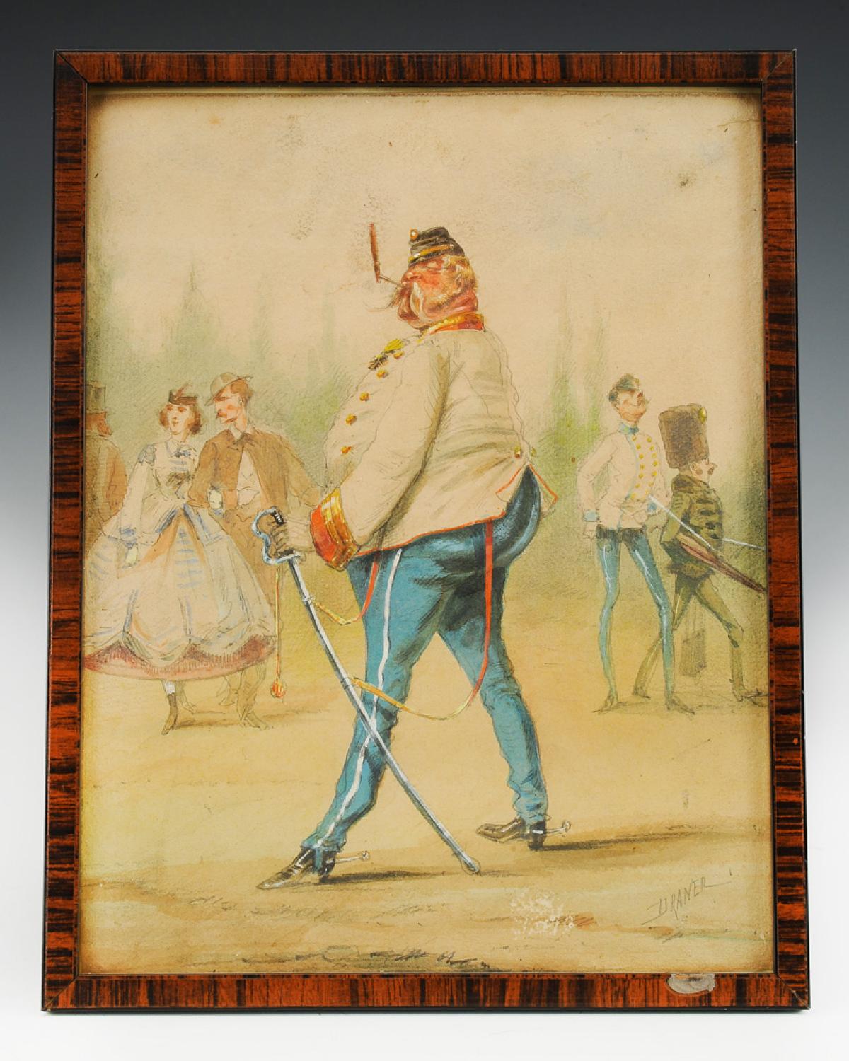 CHARLES DRANER - OFFICER CARICATURE: Original watercolor, Second Empire. 33574