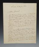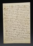 Armée d'Orient. Régiment de Dromadaires. Bel ensemble de 3 documents : LETTRE SIGNÉE THEVENIN ET CAVALIER attestant la réception de 46 dromadaires, 2 et 3 Brumaire an 8 (24 et 25 octobre 1799) ; GRAVURE Méhariste à dos du dromadaire ; ÉTAT DES HOMMES MORTS depuis la formation du Régiment jusqu'au 1er Vendémiaire an 9 (23 septembre 1800). 18910-4