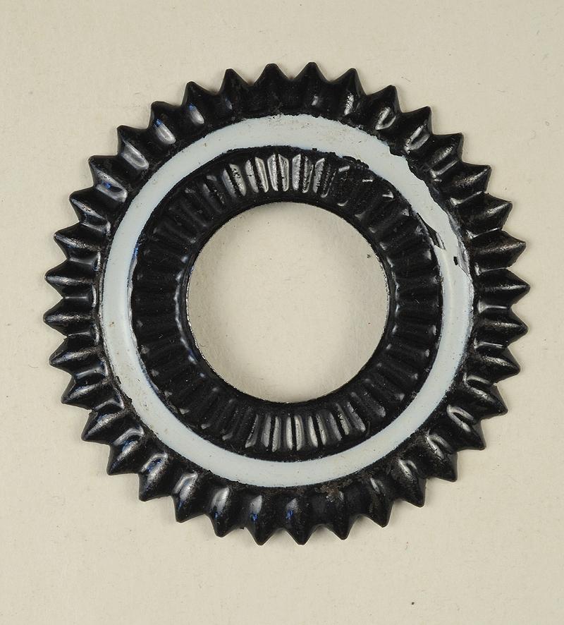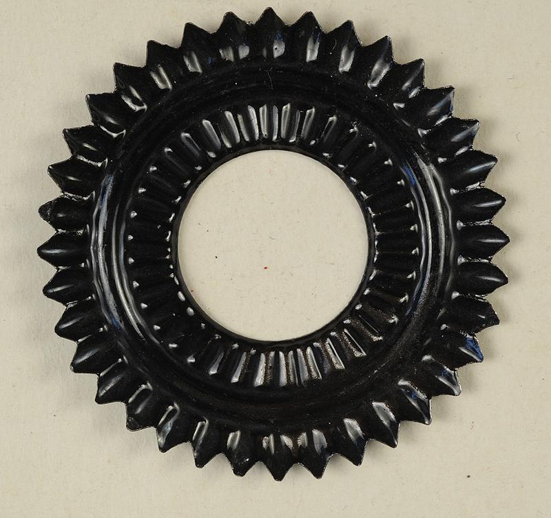 Cocarde dentelée, aux couleurs prussiennes noir-blanc-noir (quelques petits éclats dans la peinture blanche comme illustré sur les photographies).
