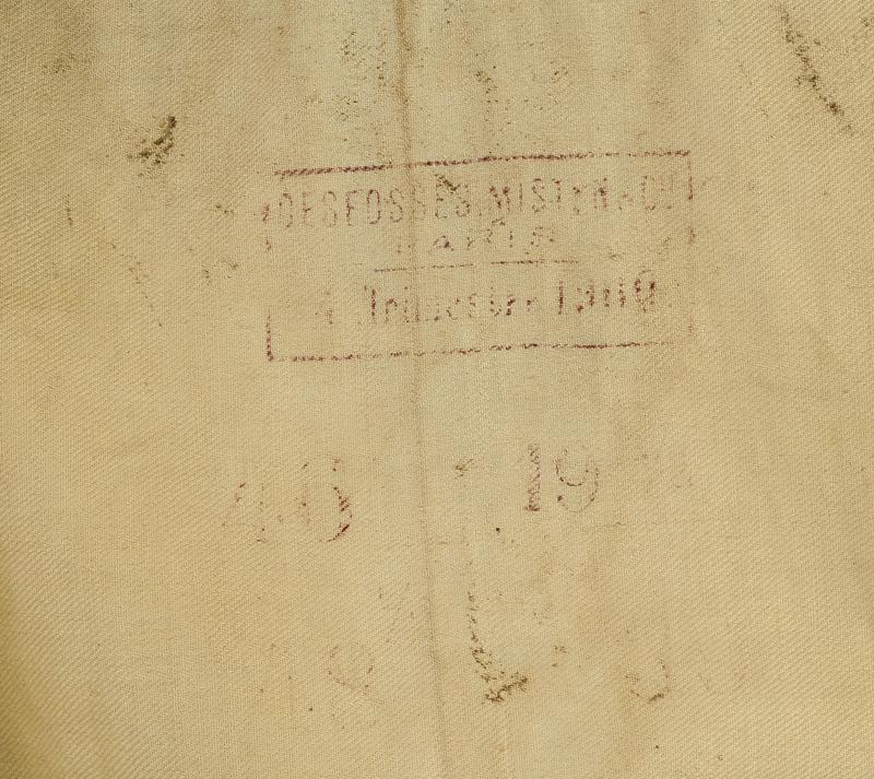 Doublure en toile de coton blanche, marquage à l’encre du matricule et de l’affectation à la « 6ème Compagnie ».