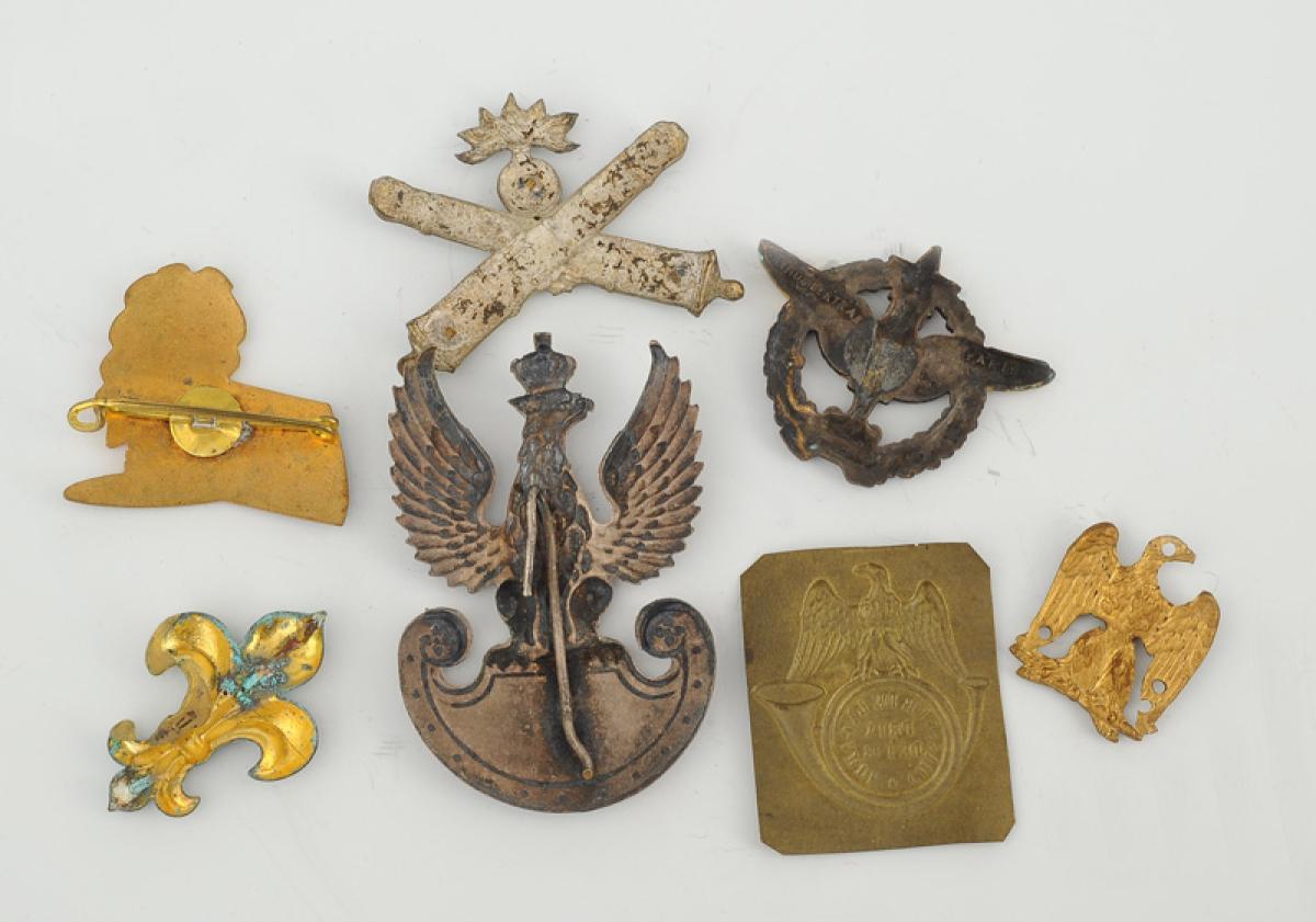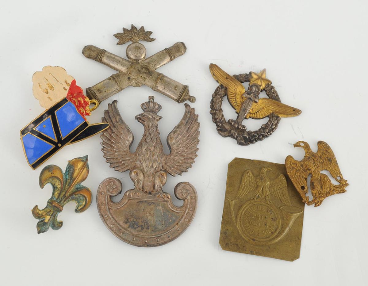 Six insignes métalliques français et polonais.