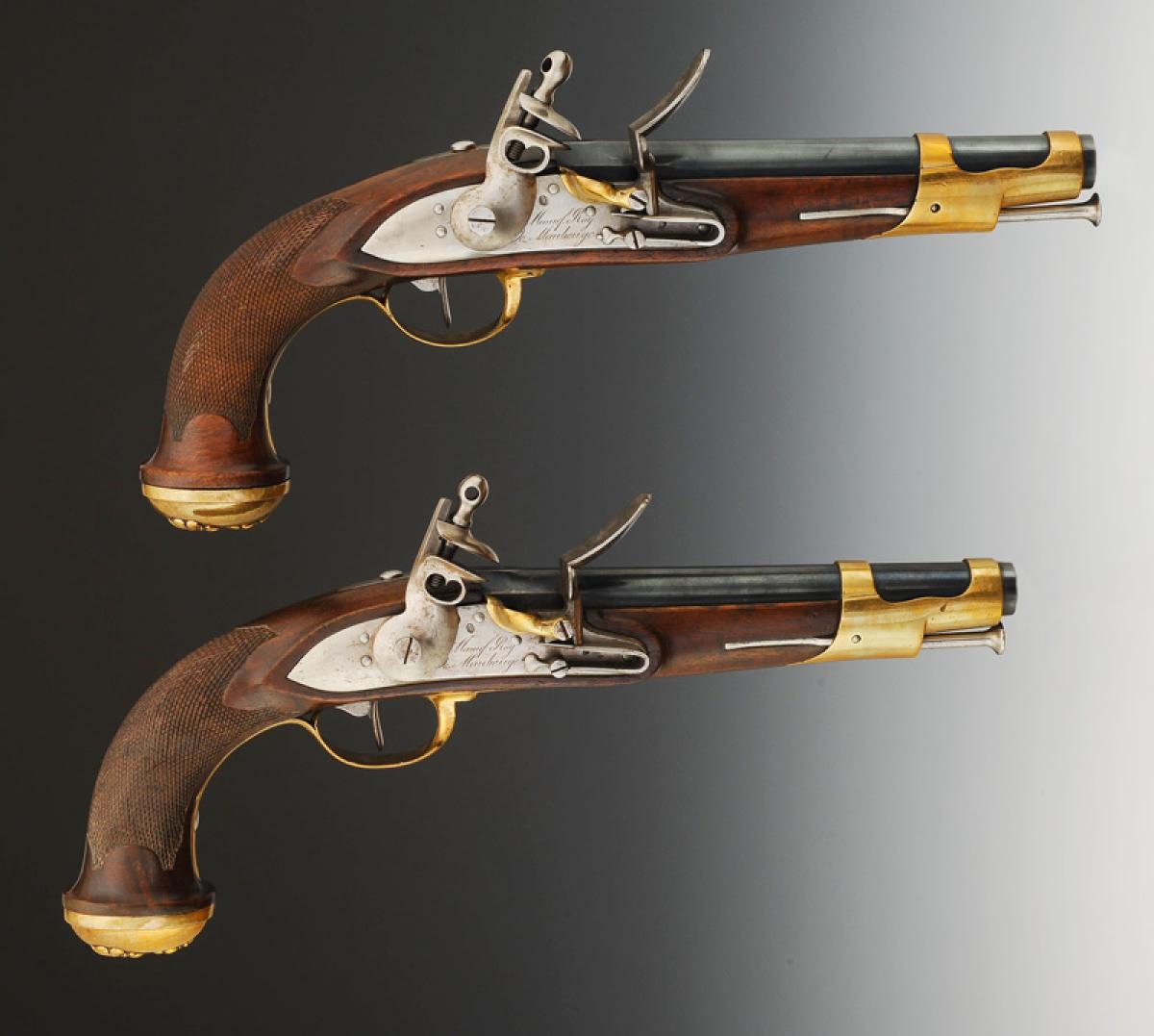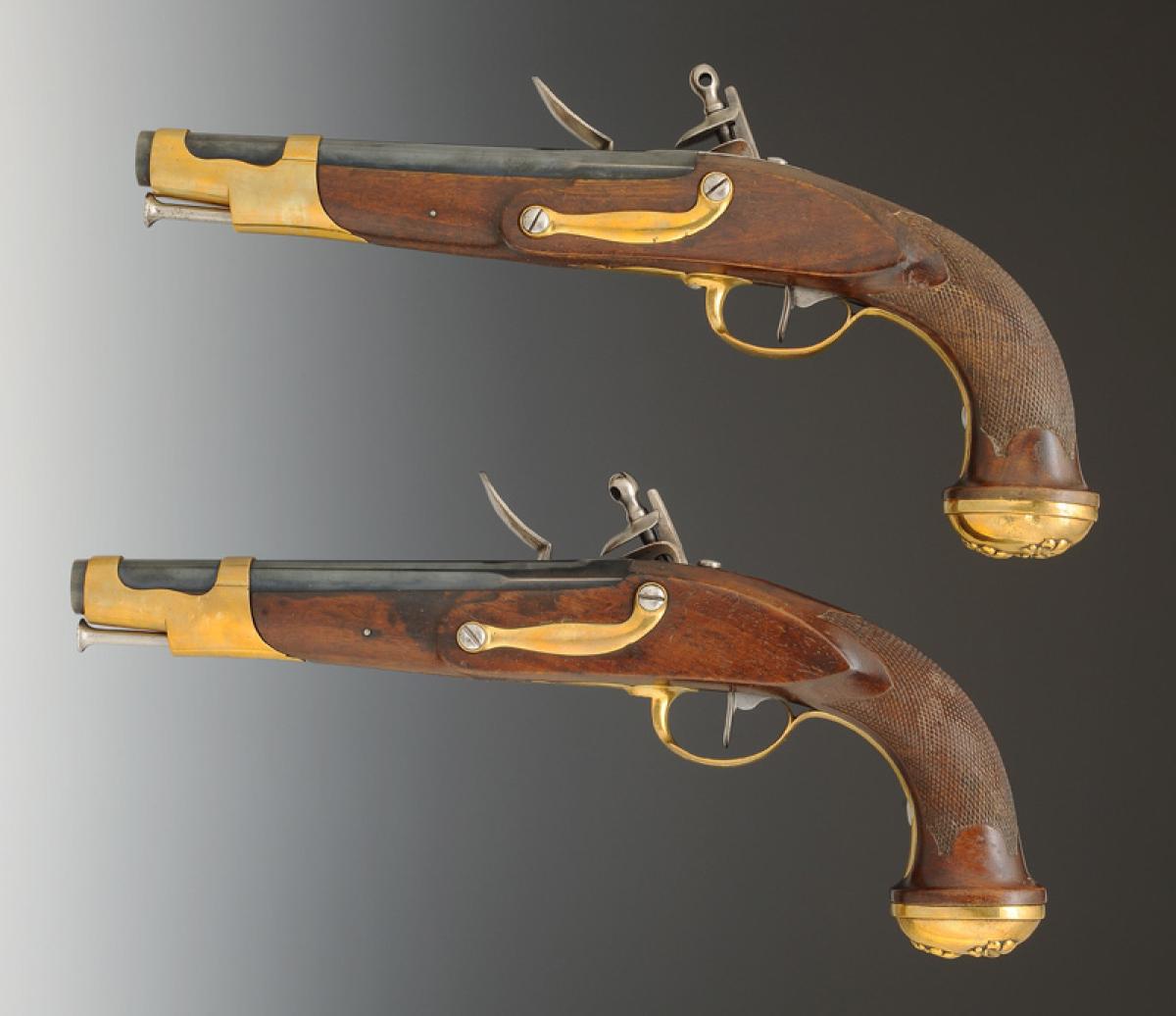 PAIRE DE PISTOLETS DES GARDES DU CORPS DE LA MAISON MILITAIRE DU ROI, second modèle 1816, Restauration. 30083