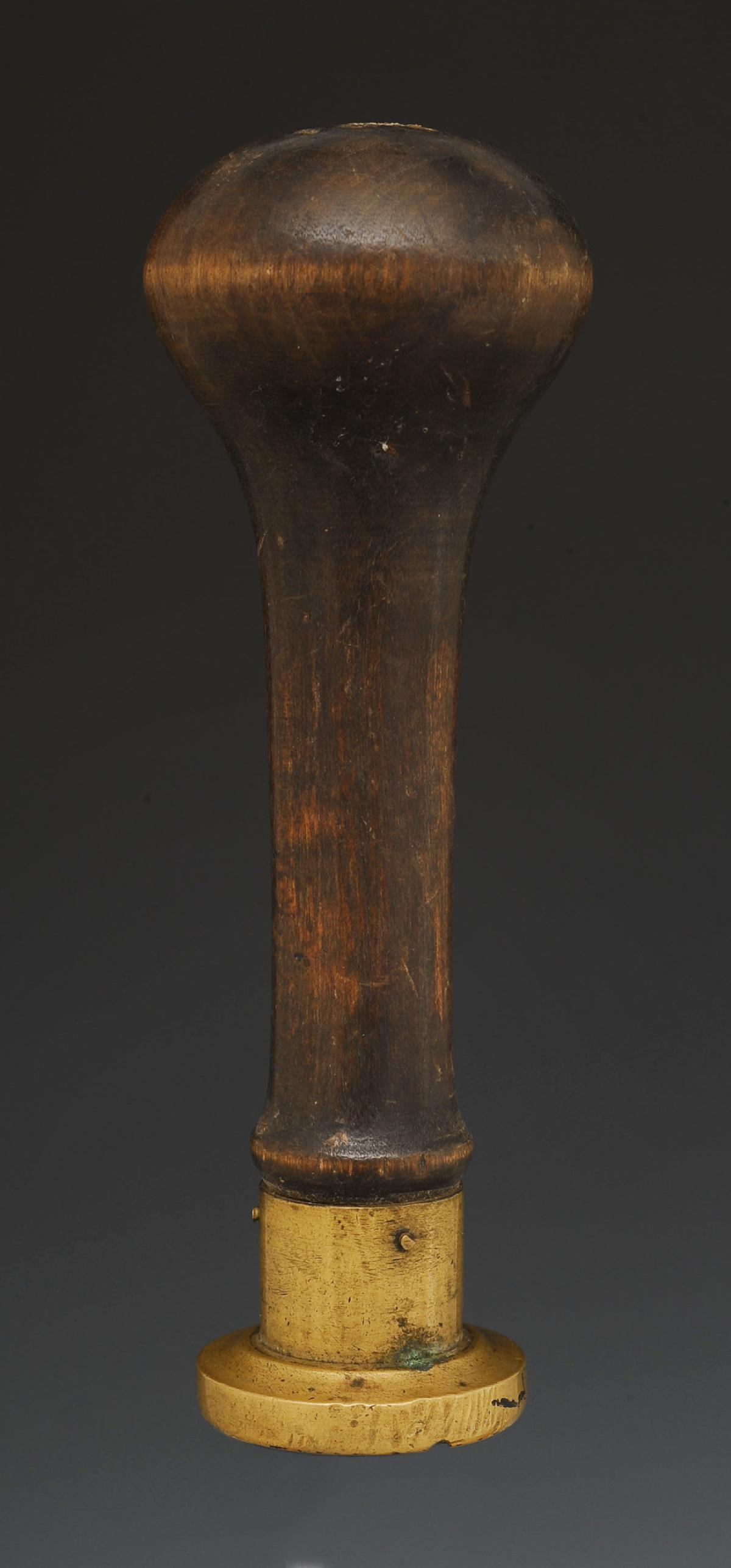 Stèle en laiton aux trois fleurs de lys Ø 3,6 cm. Complet de son manche en bois.