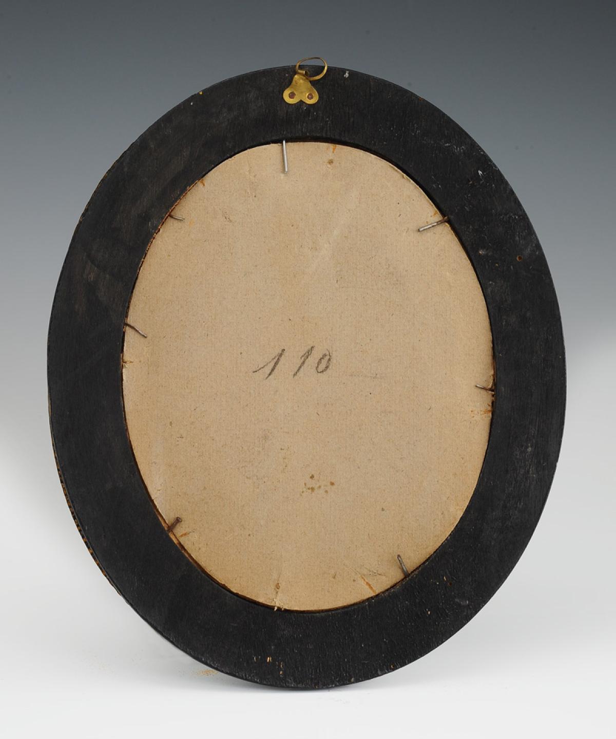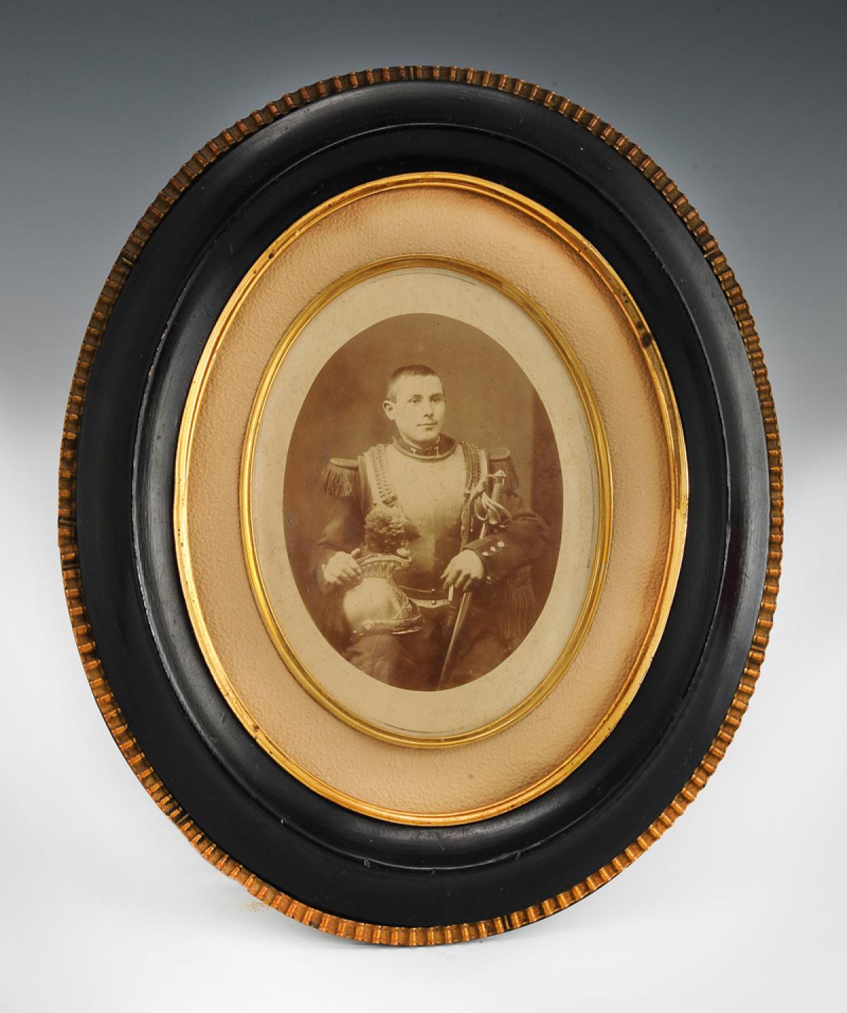 Photographie de forme ovale, H à vue 12 cm, largeur à vue 8,5 cm. Présentée sous verre dans un cadre d'époque.