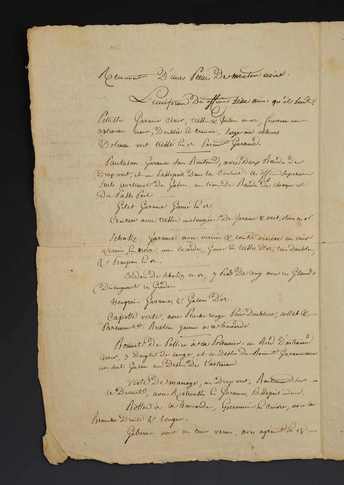 Le reste du texte décrit avec tous les détails l'uniforme complet et le harnachement de cette Jeune Garde.