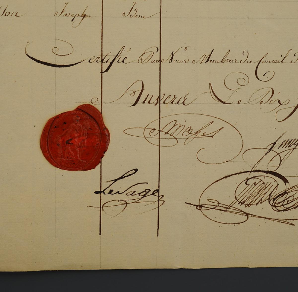 Beau cachet de cire rouge « 48ème DEMI-BRIGADE D'INFANTERIE / RÉPUBLIQUE FRANÇse ».