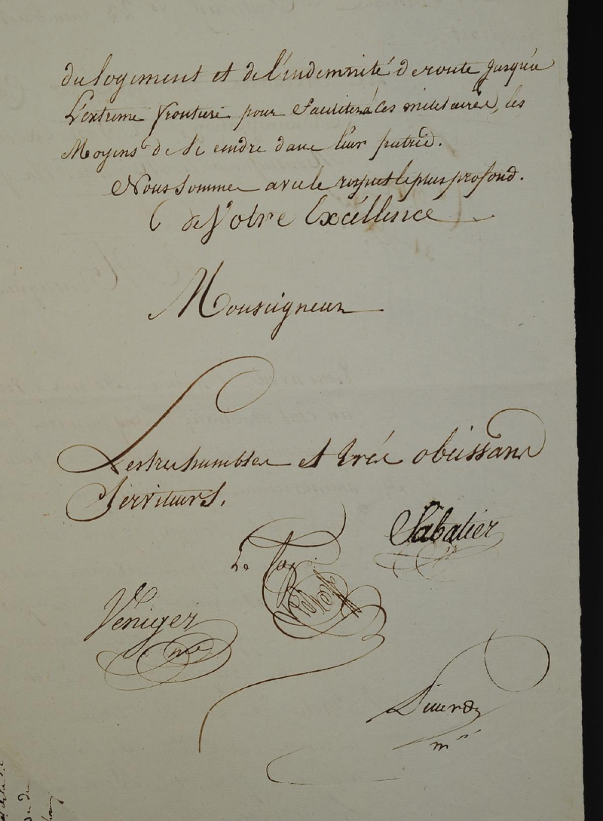 Le Major informe le Général de Division qu'il écrit une lettre au Ministre de la Guerre pour l'informer que 90 hommes sont montés pour l'Armée d'Allemagne et qu'il reste au dépôt 50 chevaux pour lesquels il va manquer de gardes d'écurie et gardes de police. « ... Je vous prie de prendre en considération cette position très nuisible au gouvernement aide nous faire obtenir une recrue assez considérable pour les chevaux puissent être pansés, ... ».