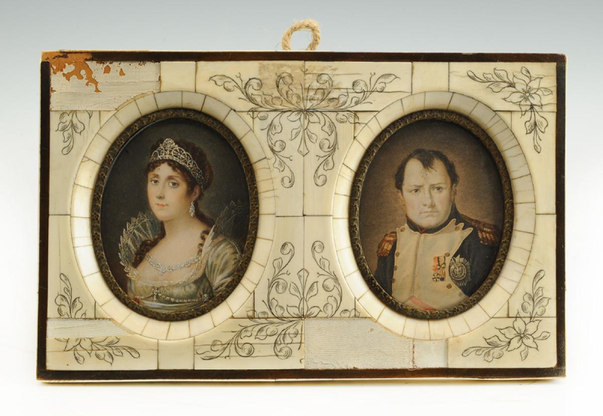MARIE-LOUISE IMPÉRATRICE ET L'EMPEREUR NAPOLÉON Ier, Premier Empire : double portrait miniature. 32601