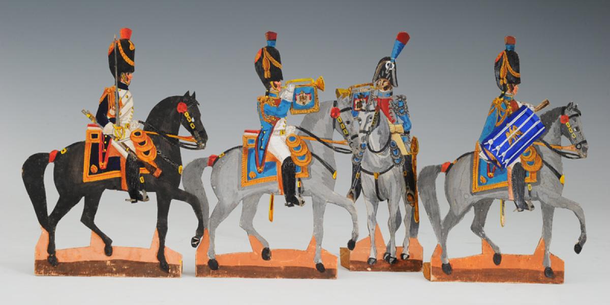 GRENADIERS À CHEVAL DE LA GARDE IMPÉRIALE PREMIER EMPIRE : SOLDATS DE STRASBOURG FIGURINE DE CARTE EN CARTON gouaché par la famille WURTZ, deuxième tiers du XIXème siècle, vers 1815-1848. 31156-11