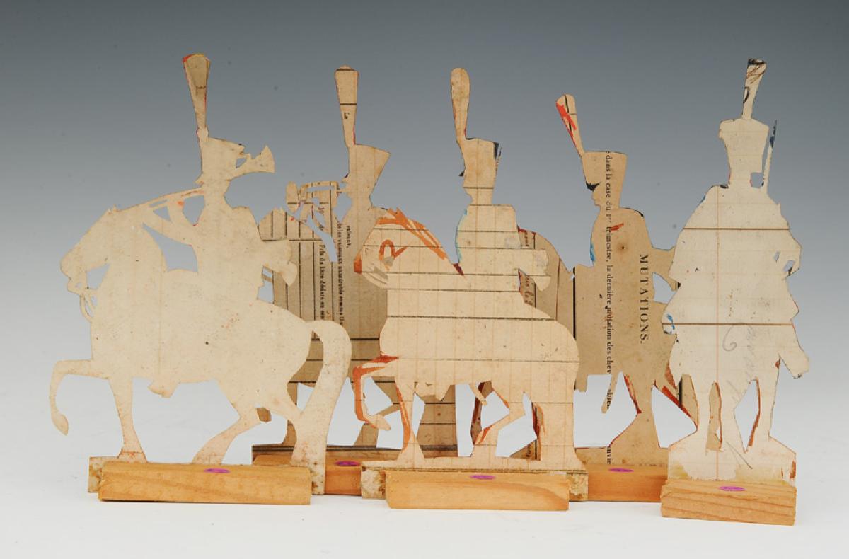 1er RÉGIMENT DE HUSSARDS PREMIER EMPIRE : SOLDATS DE STRASBOURG FIGURINE DE CARTE EN CARTON gouaché par la famille WURTZ, deuxième tiers du XIXème siècle, vers 1815-1848. 31156-24
