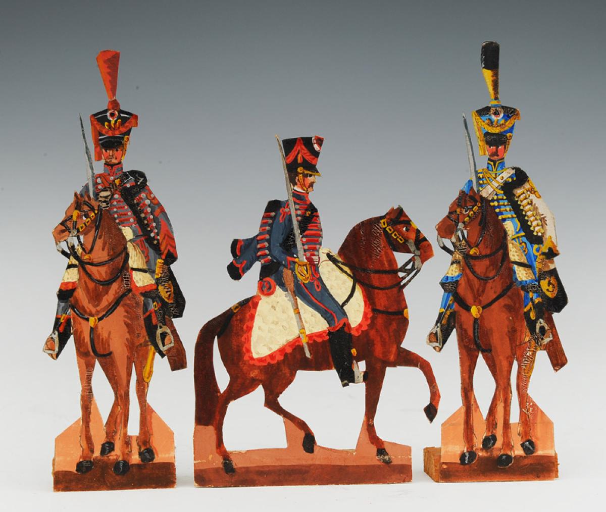 3ème RÉGIMENT DE HUSSARDS PREMIER EMPIRE : SOLDATS DE STRASBOURG FIGURINE DE CARTE EN CARTON gouaché par la famille WURTZ, deuxième tiers du XIXème siècle, vers 1815-1848. 31156-26