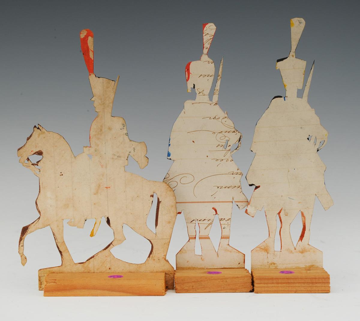 De tous ces artistes, et pour cette période, les trois plus connus sont : Thiébaut Borerst (par erreur orthographié Boersch) (1782-1824) boulanger farinier il commence à dessiner vers 1800, neveu du peintre Benjamin Zix, sa collection fut dispersée aux enchères à Angers le 10 mars 1971, son style est probablement le plus abouti que nous connaissons. Eugène Nicollet (1802-1872) qui peignit ses soldats dès 1817 (il avait 15 ans) et ce durant 55 ans, sa collection est conservée au Musée de Compiègne, son style est plus naïf. Wurtz à qui nous consacrons un paragraphe spécifique. Paul Schmidt dont chaque figurine est annotée au dos du nom du soldat ainsi "croqué", cette collection conservée au Musée de l'Armée à Paris a la caractéristique de représenter les soldats de la Garde Nationale de Strasbourg, entre autre.
