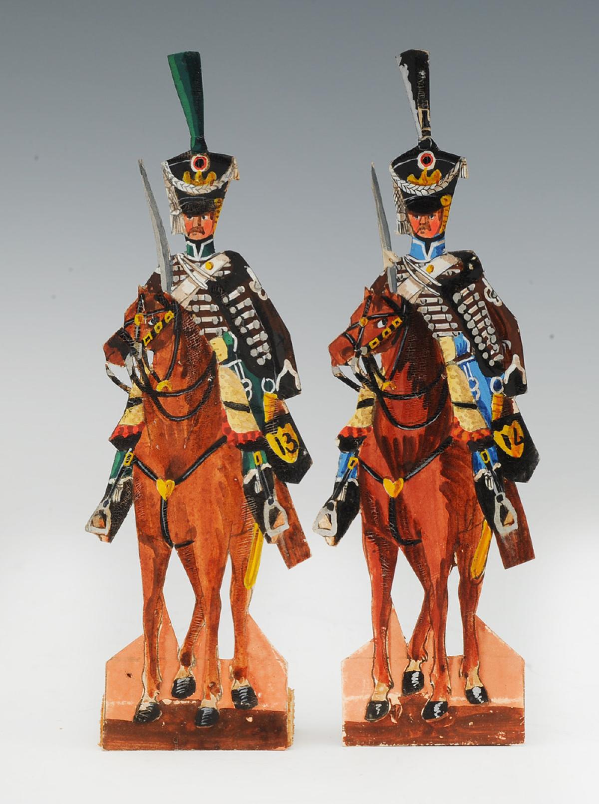 13ème et 14ème RÉGIMENTS DE HUSSARDS PREMIER EMPIRE : SOLDATS DE STRASBOURG FIGURINE DE CARTE EN CARTON gouaché par la famille WURTZ, deuxième tiers du XIXème siècle, vers 1815-1848. 31156-36