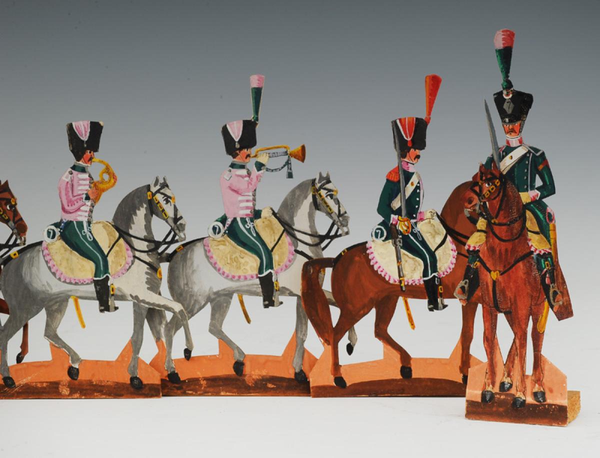 7ème RÉGIMENT DE CHASSEURS À CHEVAL PREMIER EMPIRE : SOLDATS DE STRASBOURG FIGURINE DE CARTE EN CARTON gouaché par la famille WURTZ, deuxième tiers du XIXème siècle, vers 1815-1848. 31156-37