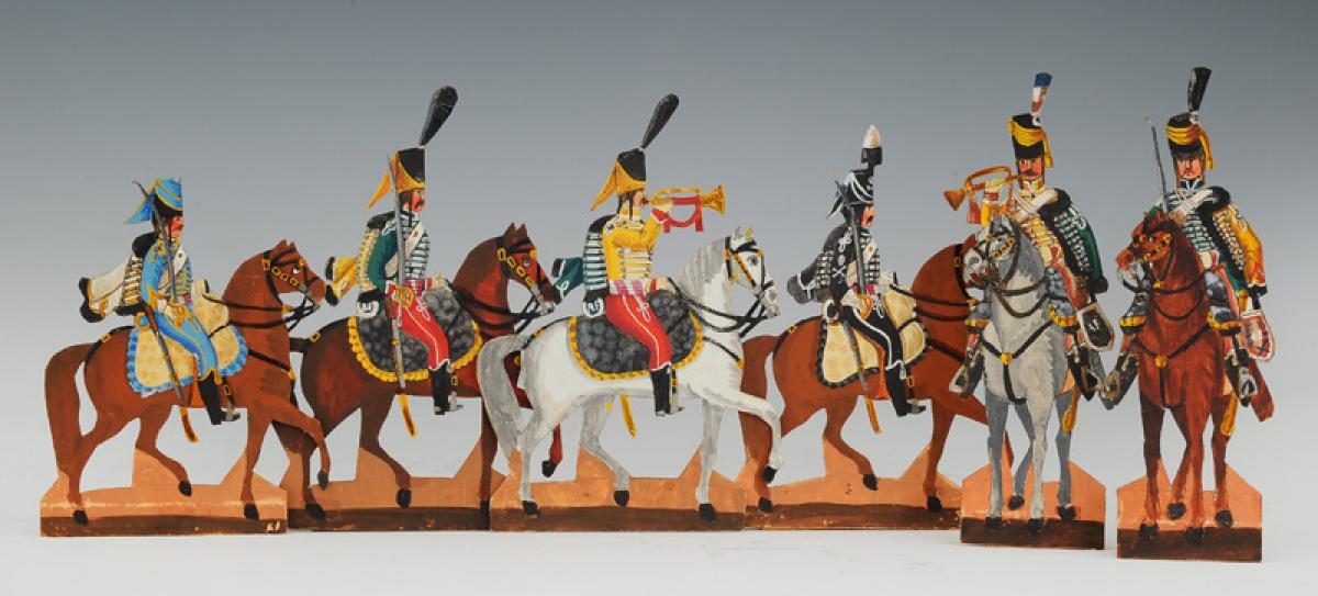 De tous ces artistes, et pour cette période, les trois plus connus sont : Thiébaut Borerst (par erreur orthographié Boersch) (1782-1824) boulanger farinier il commence à dessiner vers 1800, neveu du peintre Benjamin Zix, sa collection fut dispersée aux enchères à Angers le 10 mars 1971, son style est probablement le plus abouti que nous connaissons. Eugène Nicollet (1802-1872) qui peignit ses soldats dès 1817 (il avait 15 ans) et ce durant 55 ans, sa collection est conservée au Musée de Compiègne, son style est plus naïf. Wurtz à qui nous consacrons un paragraphe spécifique. Paul Schmidt dont chaque figurine est annotée au dos du nom du soldat ainsi "croqué", cette collection conservée au Musée de l'Armée à Paris a la caractéristique de représenter les soldats de la Garde Nationale de Strasbourg, entre autre.