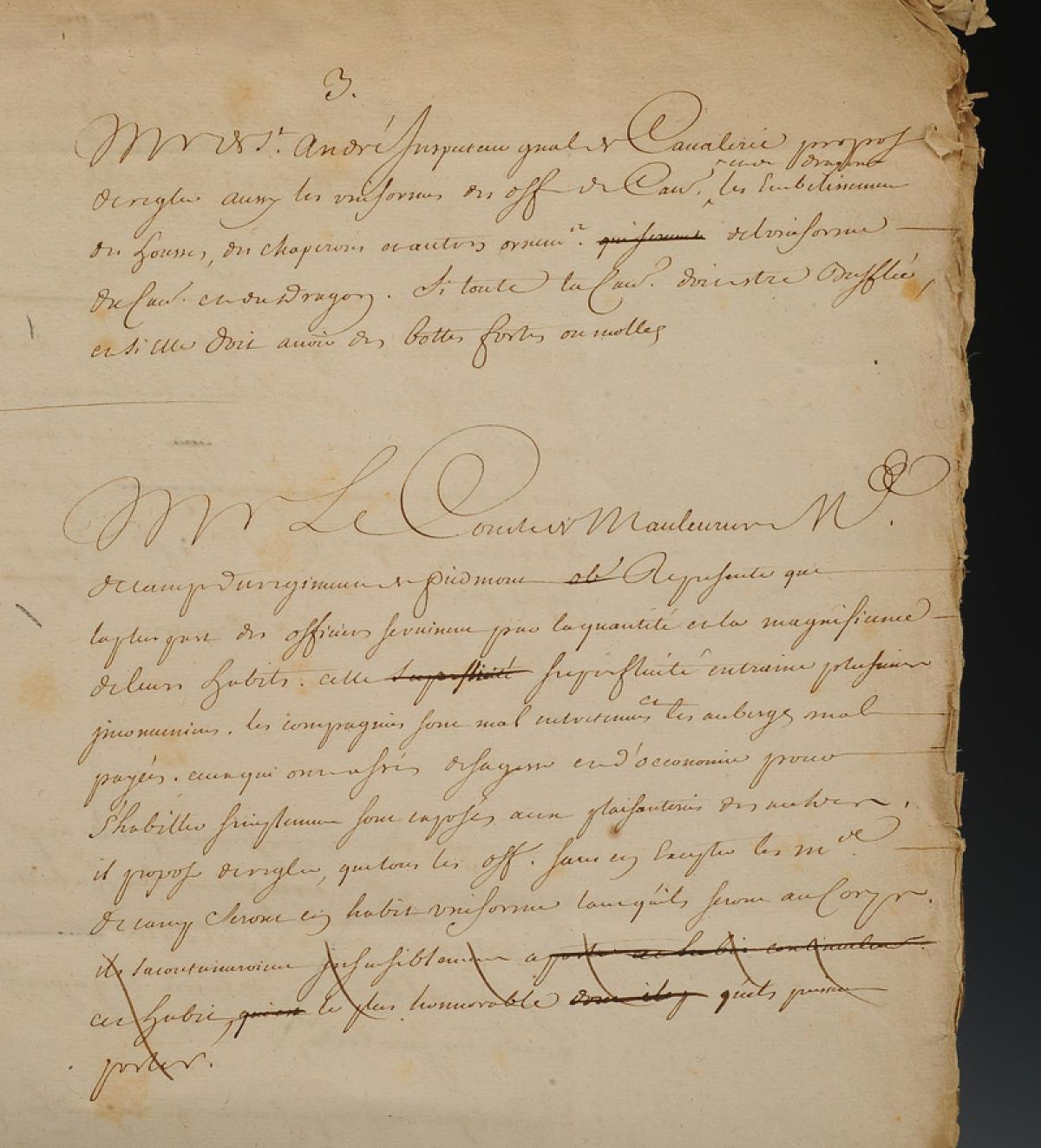 Document manuscrit : « OBSERVATIONS SUR L'ORDONNANCE DU 10 MARS 1729 CONCERNANT L'HABILLEMENT », 33184-1