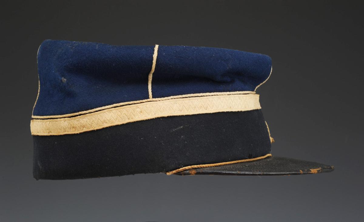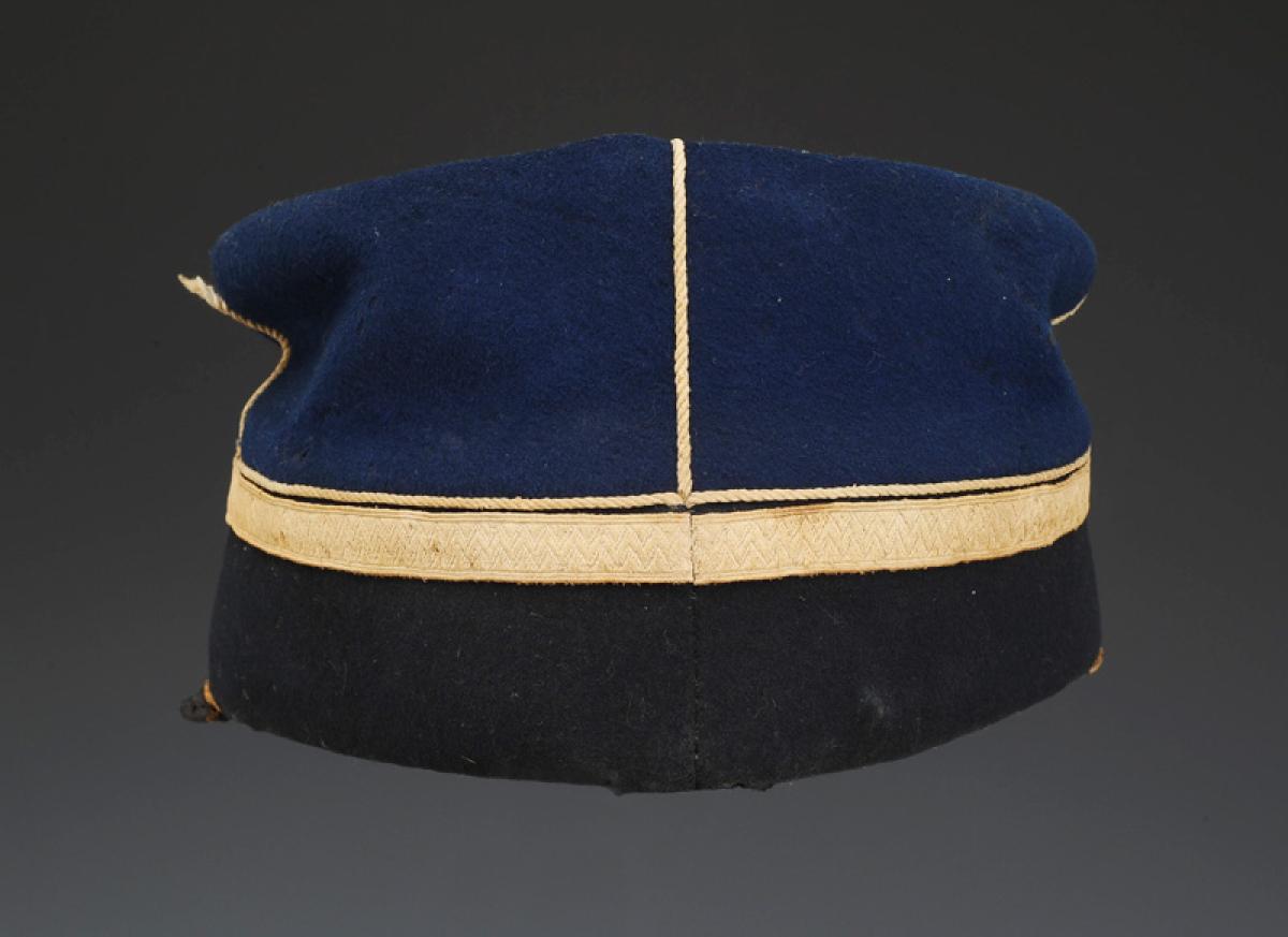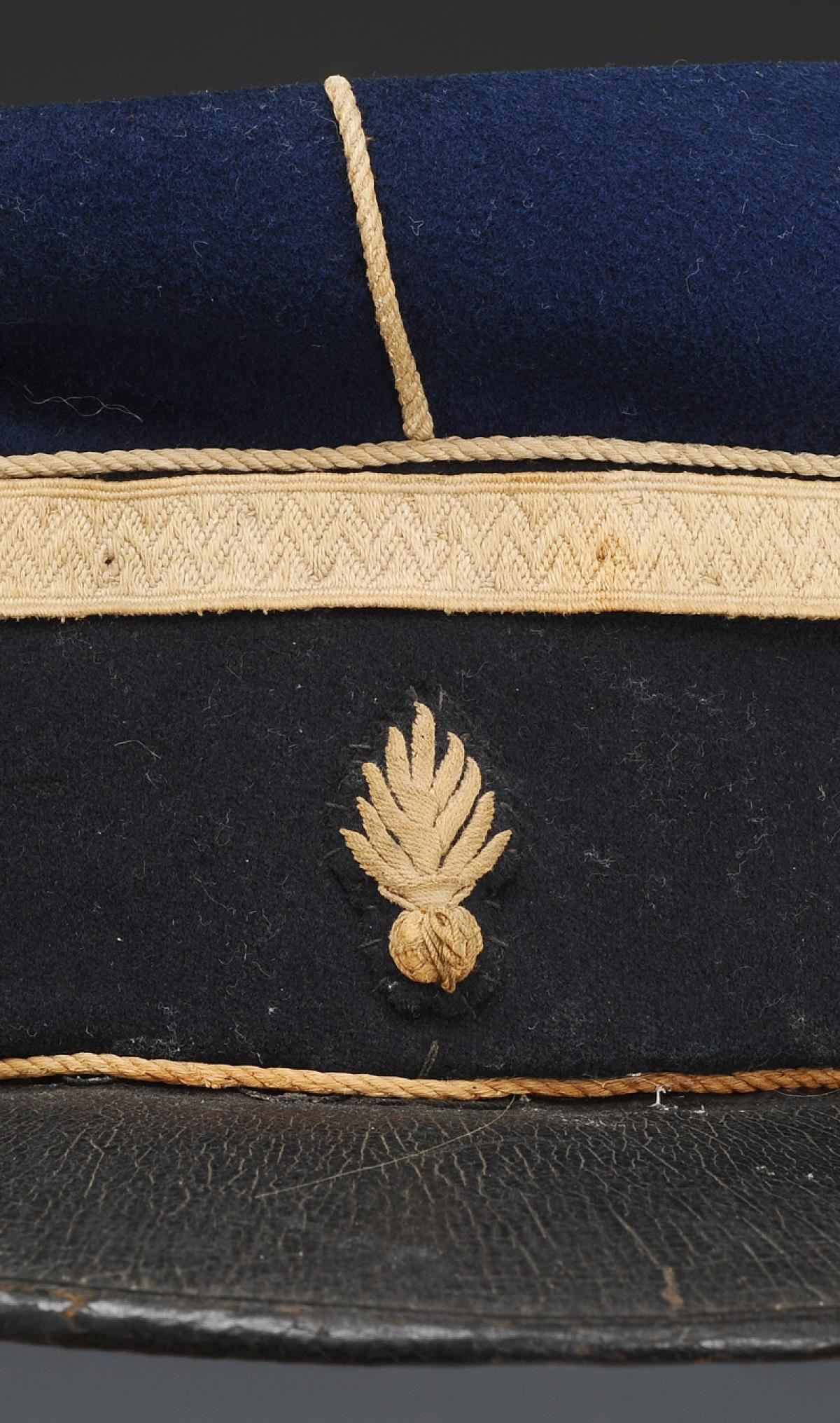 Bon état, quelques léchures de mites, accident à l'un des cordonnets latéraux, coiffe portée avec usure d'usage.