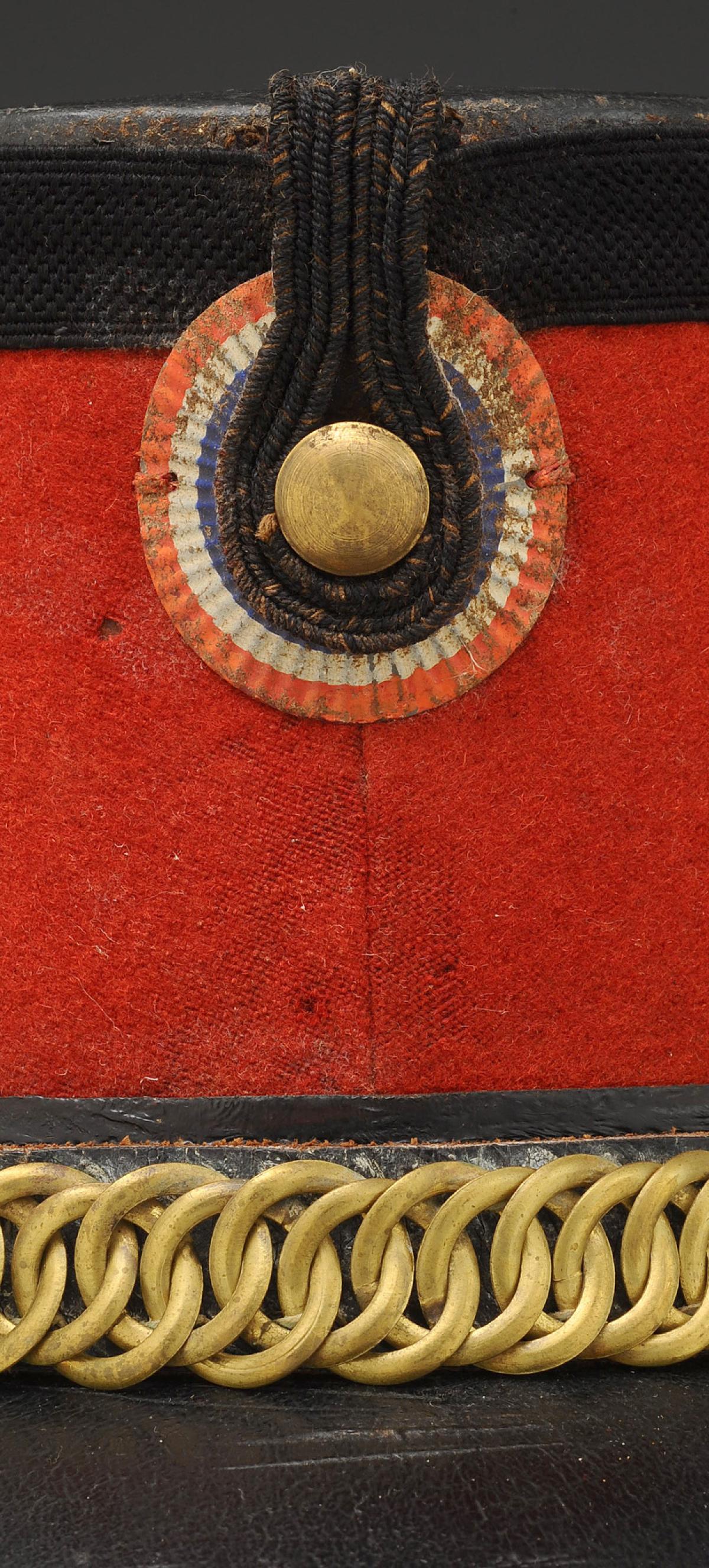 Plumet en crin écarlate, avec son olive en drap de laine de la même couleur.