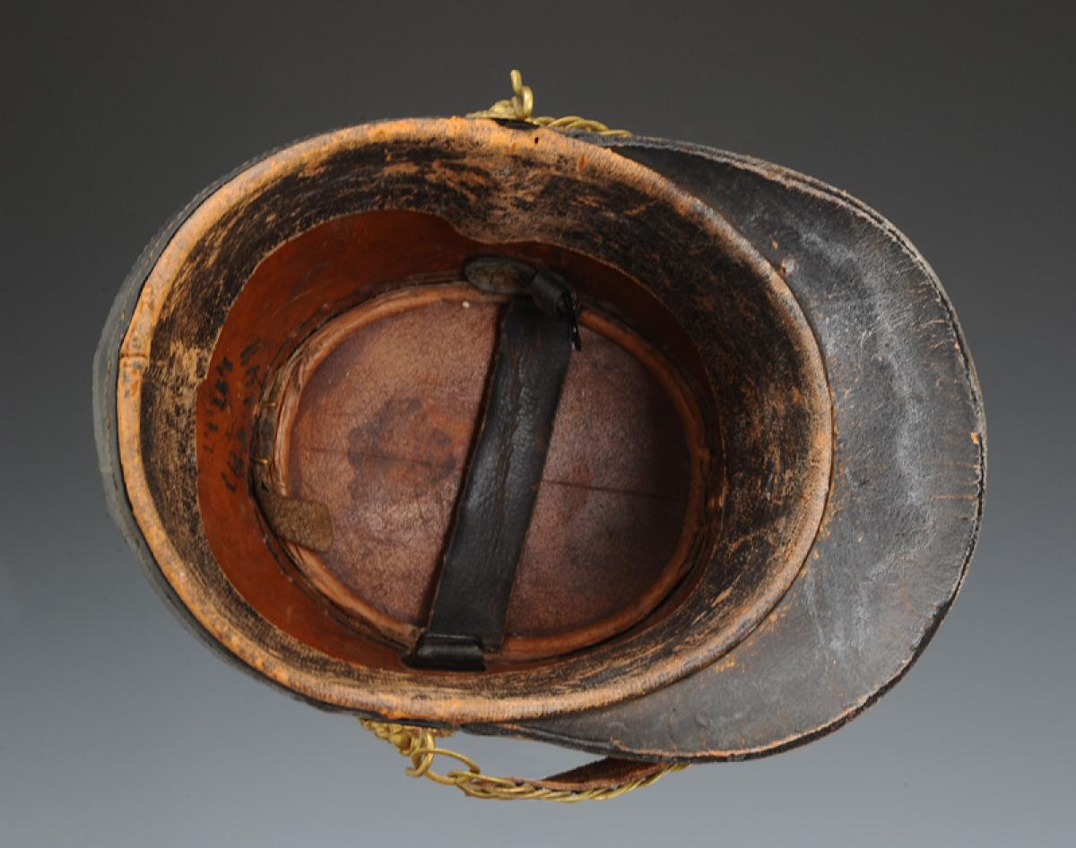Coiffe intérieure en basane cirée noir. Marque du fabricant « Alexis Godillot - Paris ».