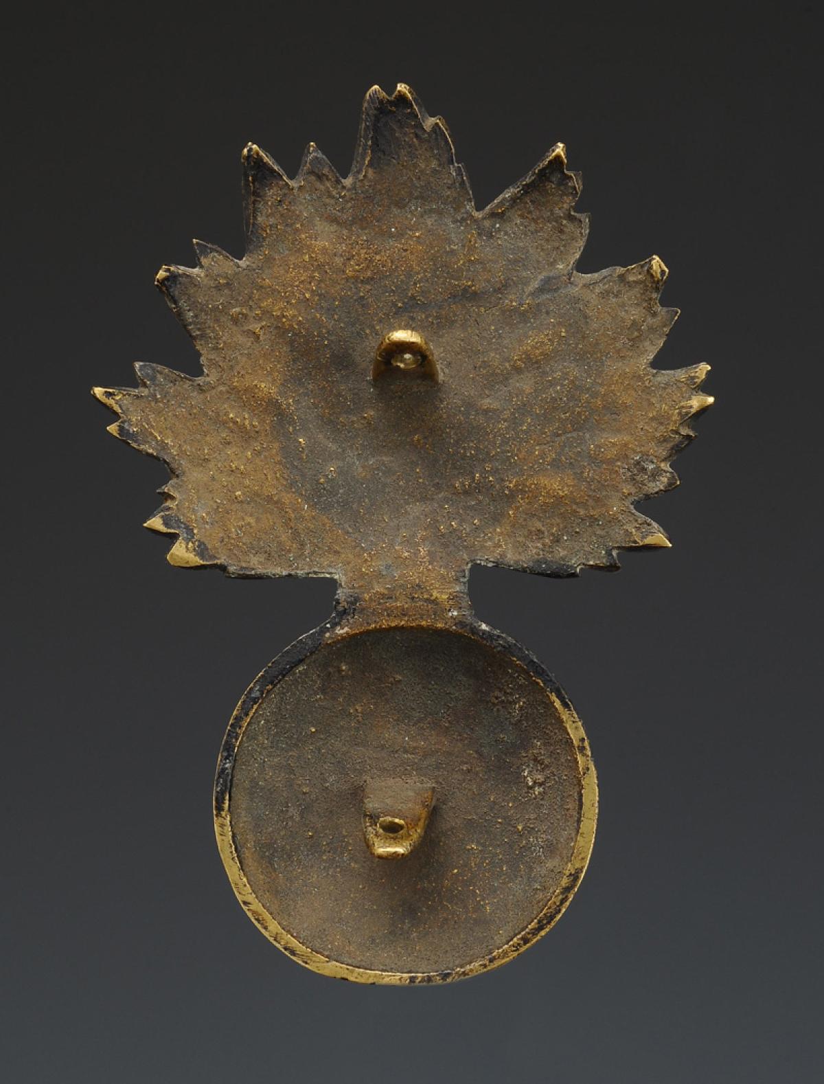 En laiton fondu, H 8,5 cm x 5,5 cm. Complète de ses deux pontets de fixation arrière.