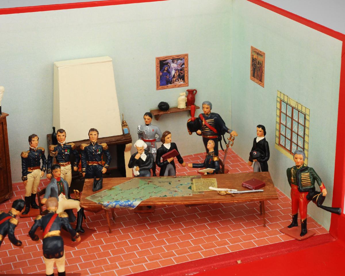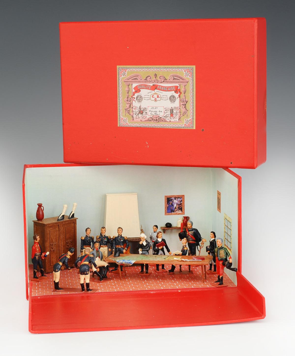Figurines en plomb 54 mm, présentées dans un coffret de luxe avec dix figurines et des accessoires dont une table, une armoire, une cheminée.