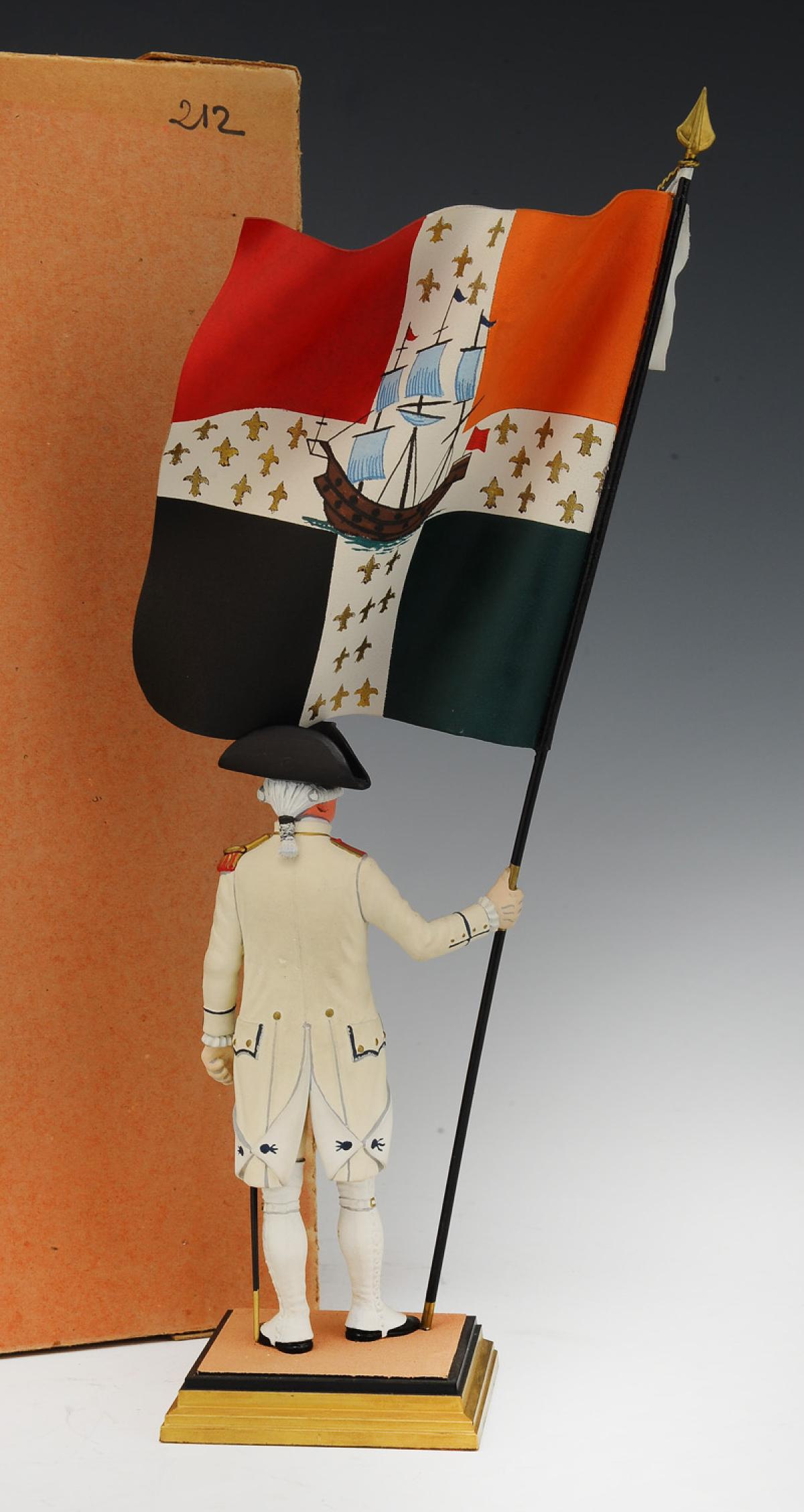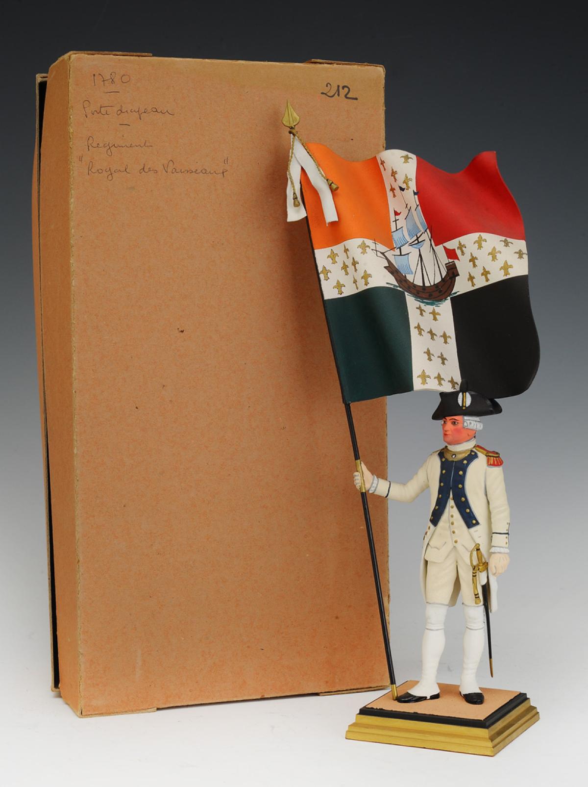 GEORGES FOUILLÉ, peintre de la Marine (1909-1994) : PORTE-DRAPEAU D'INFANTERIE AU RÉGLEMENT DE 1780 DU RÉGIMENT DE ROYAL DES VAISSEAUX, XXème siècle. 33369