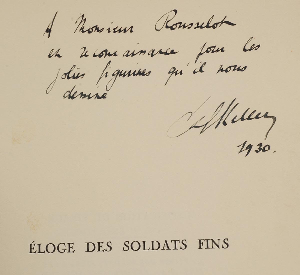 Félix Keller : Éloge des soldats fins. Bon état.