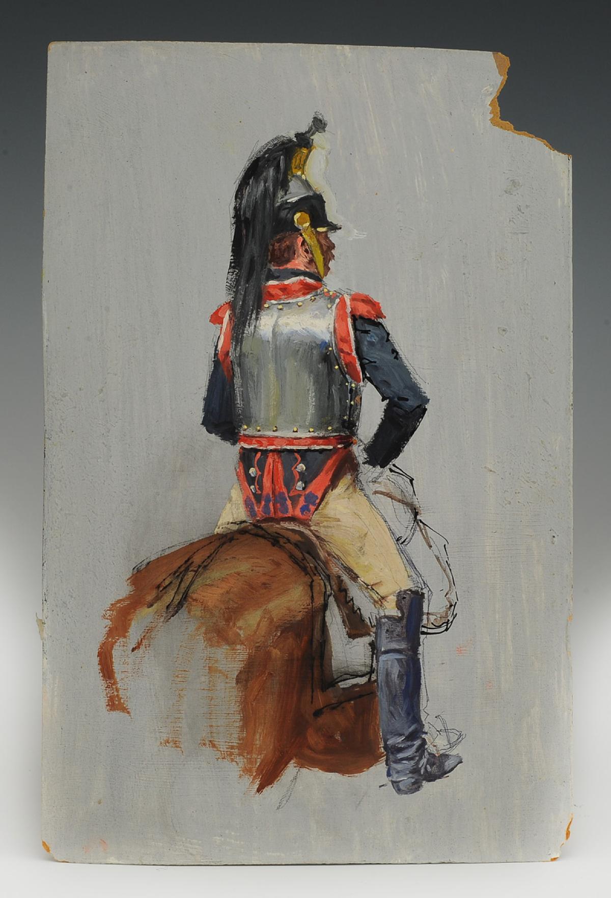 LUCIEN ROUSSELOT - CUIRASSIER PREMIER EMPIRE : étude originale à la gouache, Début du XXème siècle. 33383