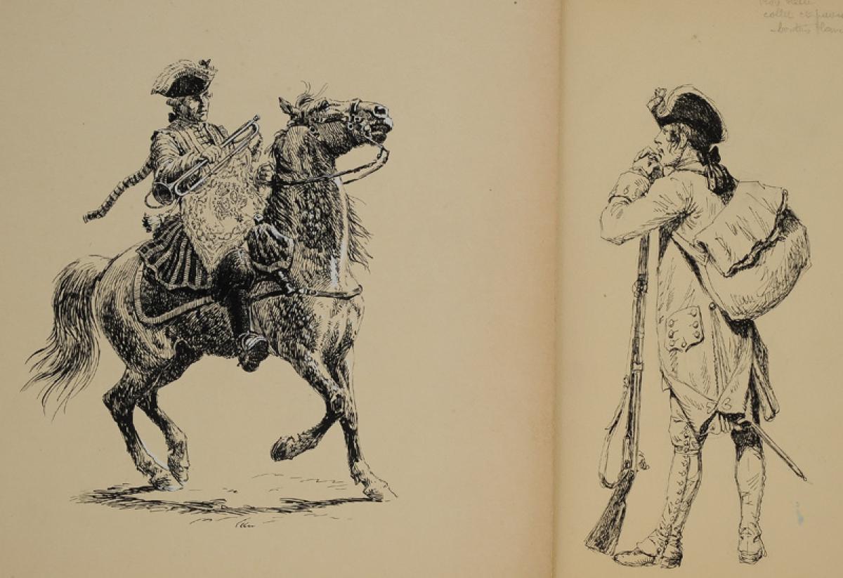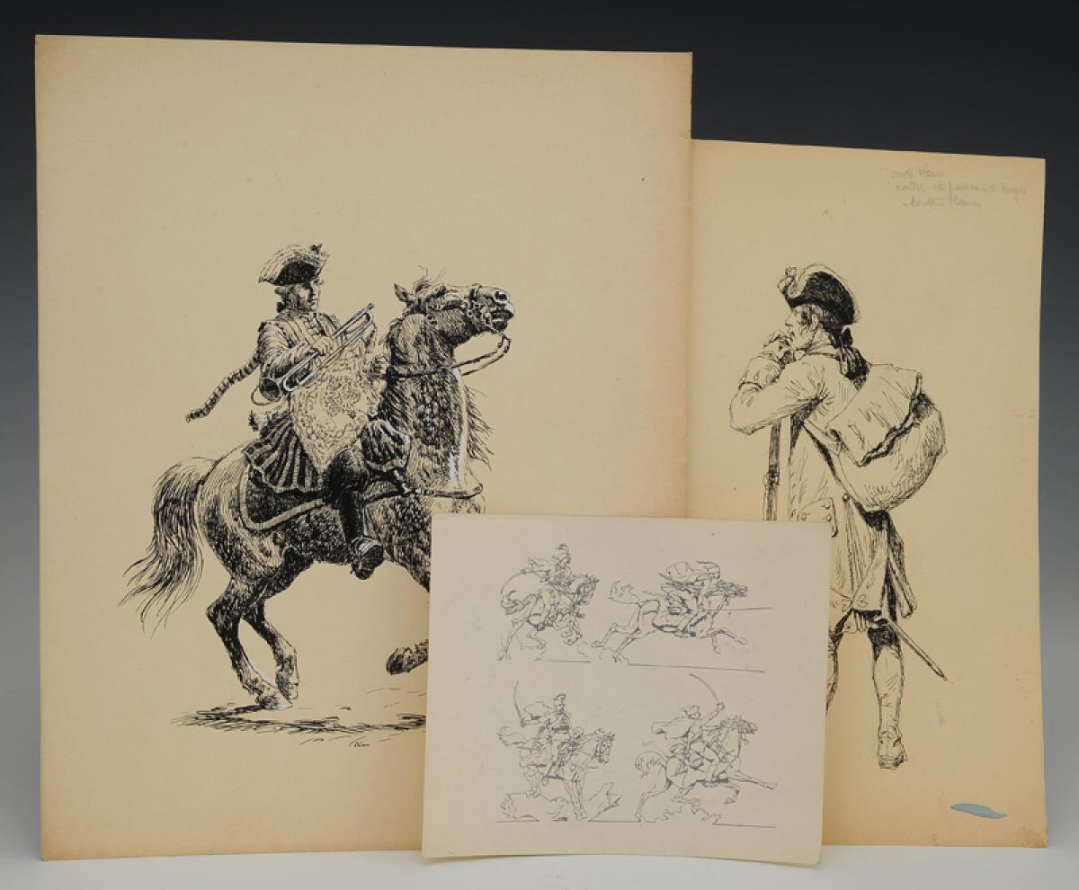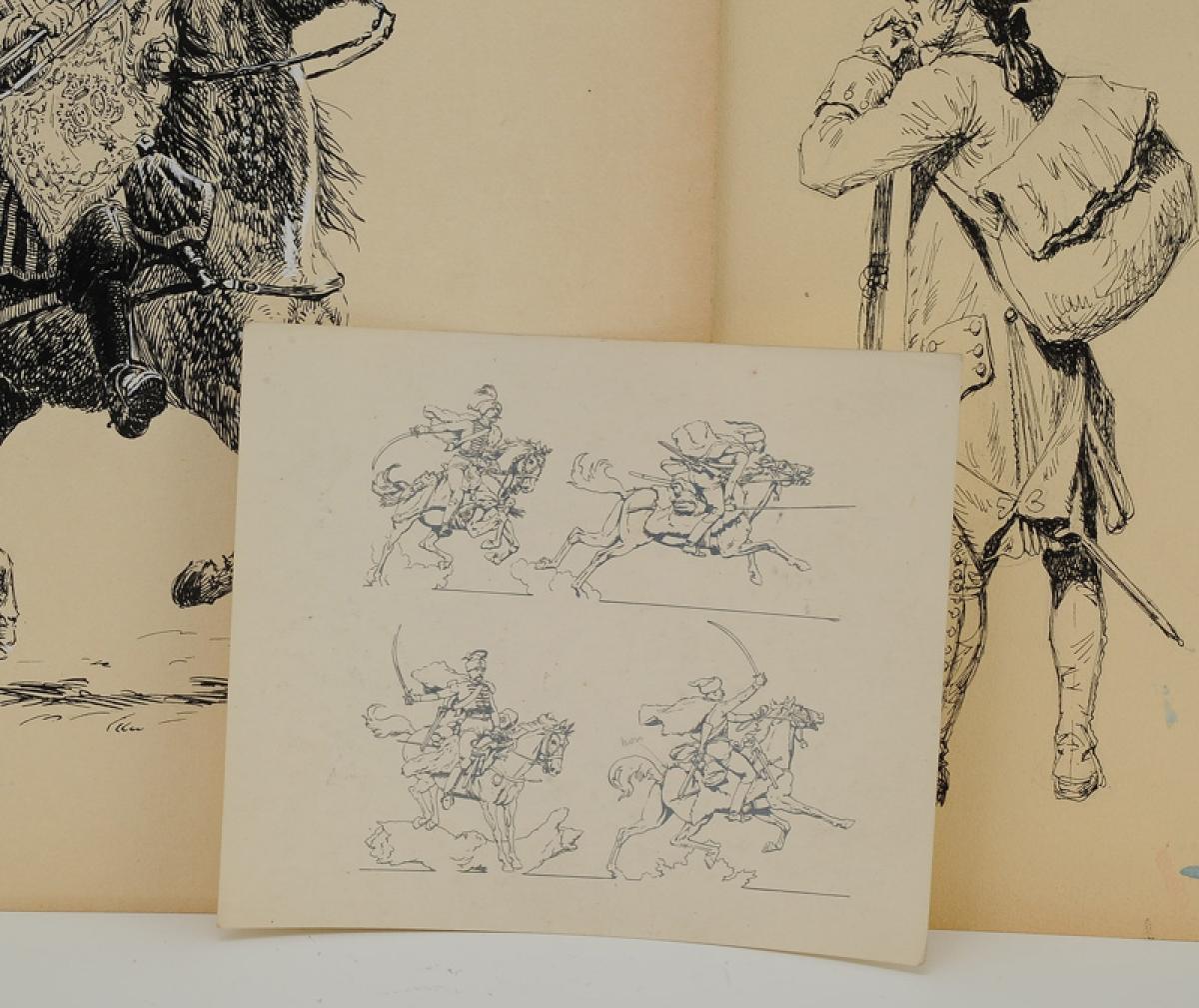 On y joint une étude imprimée représentant une charge de quatre hussards.