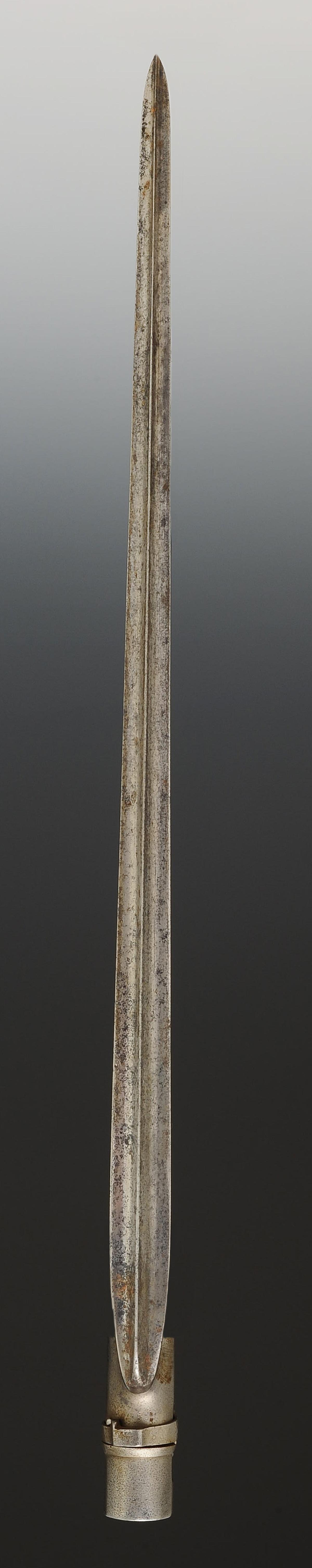 Baïonnette à douille. Longueur de la lame 41,7 cm. Longueur totale 52,5 cm.