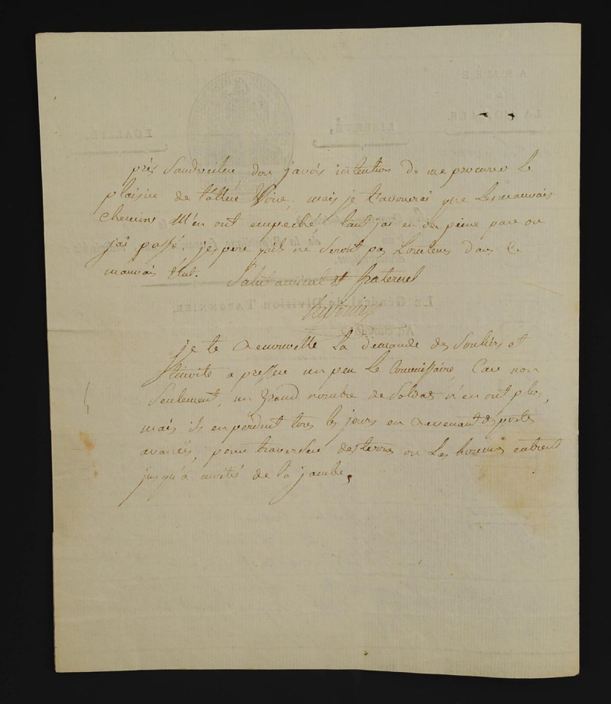 Le général de division Taponnier écrit au général Ambert pour l'informer « qu'il n'y a rien de nouveau » mais qu'un « déserteur à pied du régiment de Benden est arrivé avec son armement ». Ce déserteur donne quelques informations :
