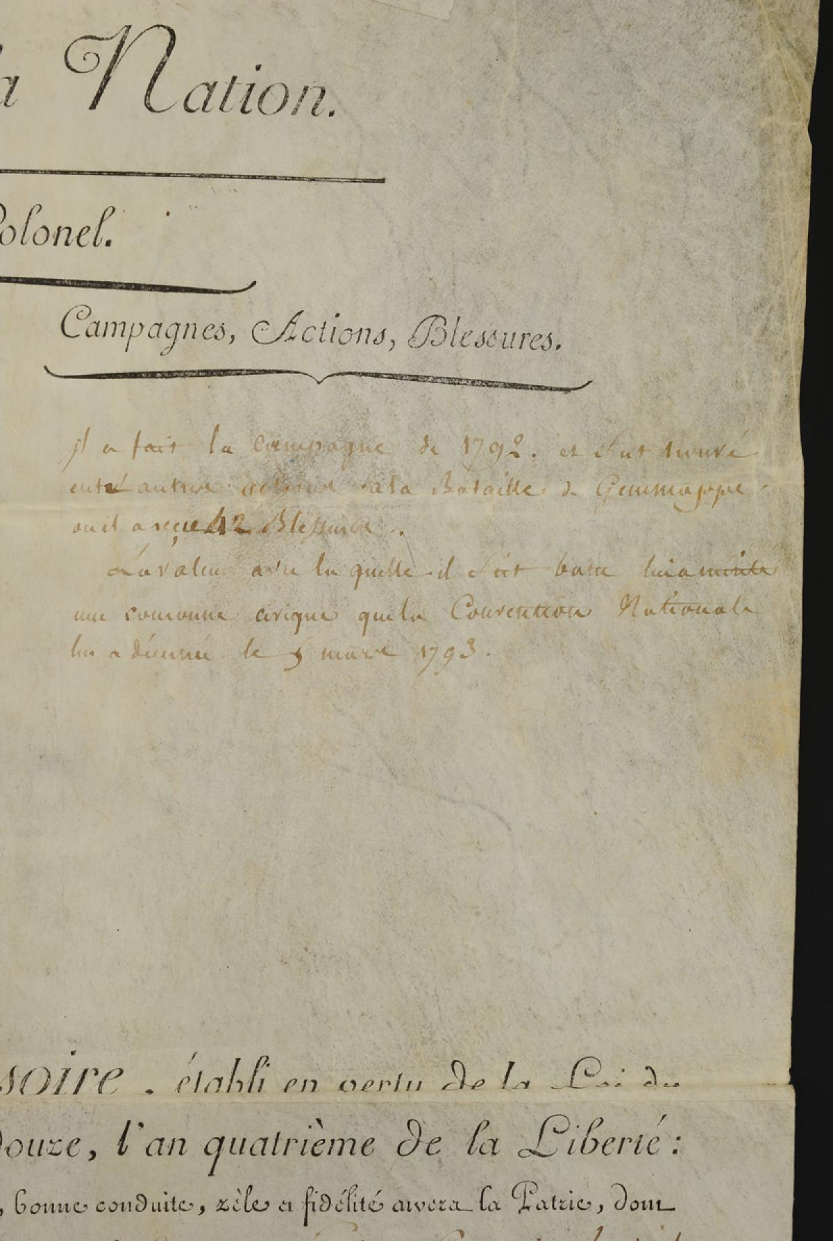« Au nom de la Nation » « Brevet de Colonel »