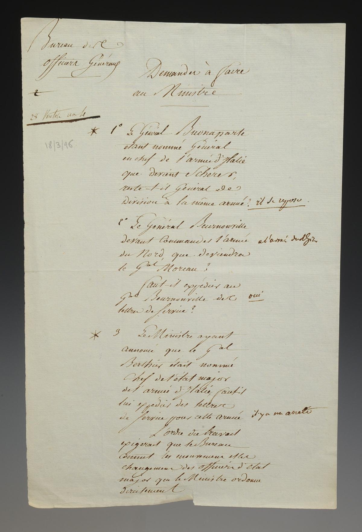 3 - Le Ministre ayant annoncé que le Général Berthier était nommé chef de l'état major de l'armée d'Italie, faut-il lui expédier des lettres de service pour cette armée ?