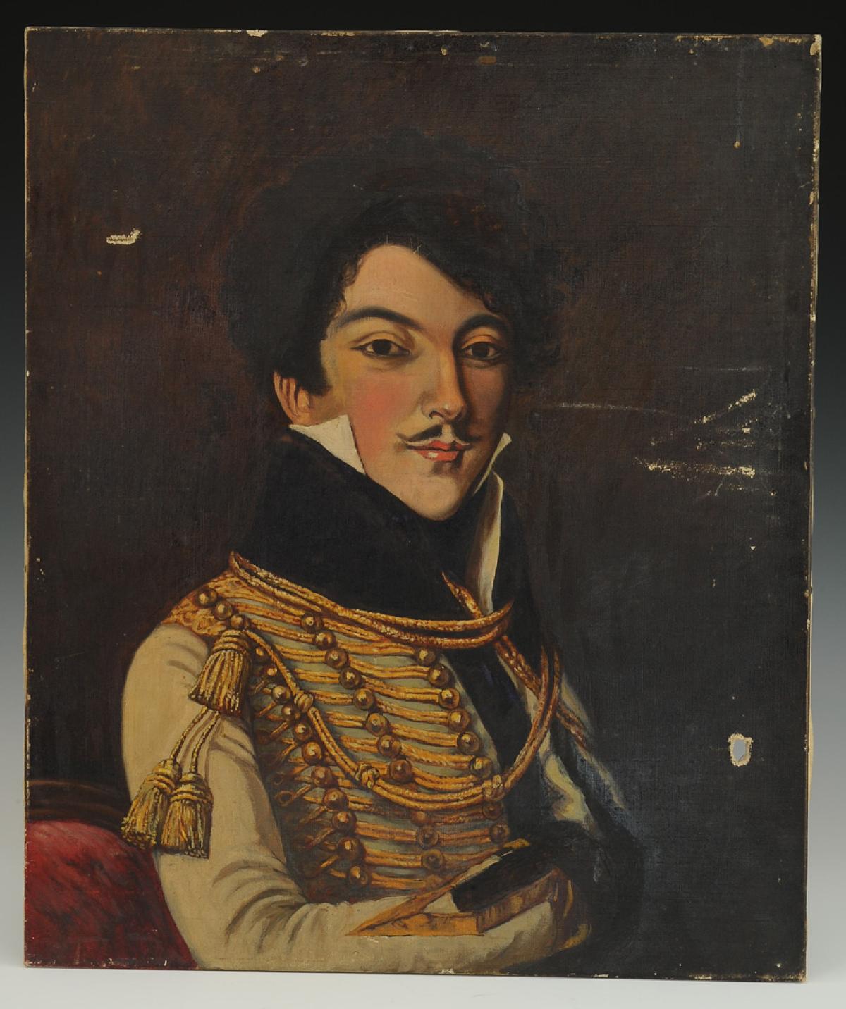 Portrait en buste de l'officier en pelisse blanche à tresses et passementeries dorées. Non signé. H 55 cm x 46 cm.