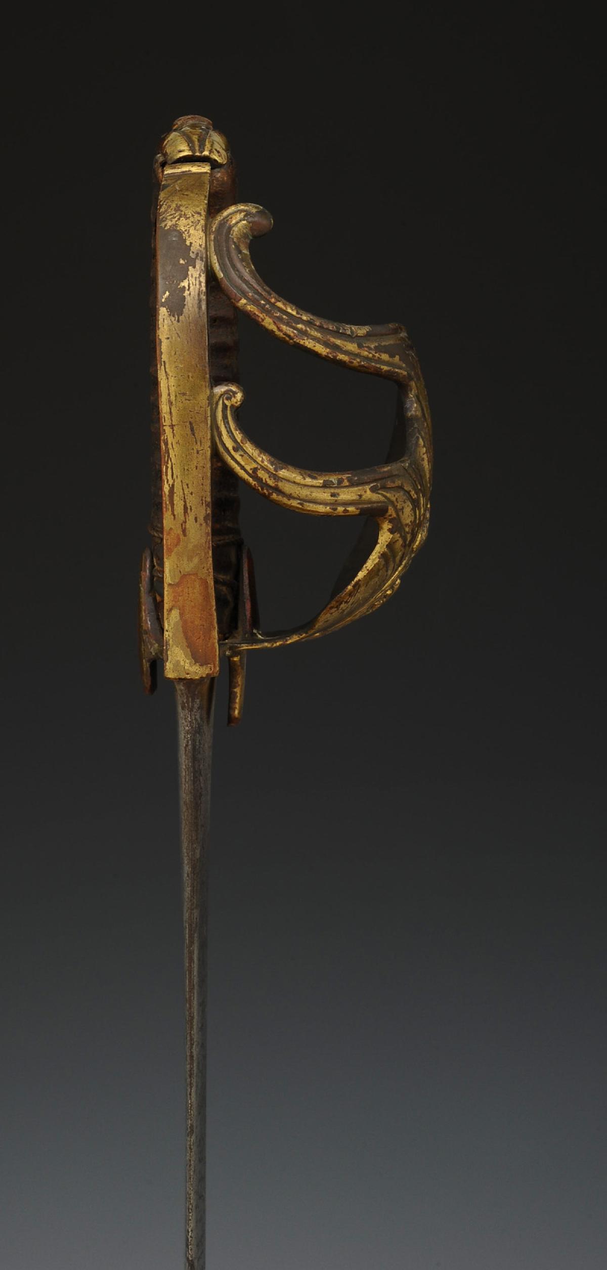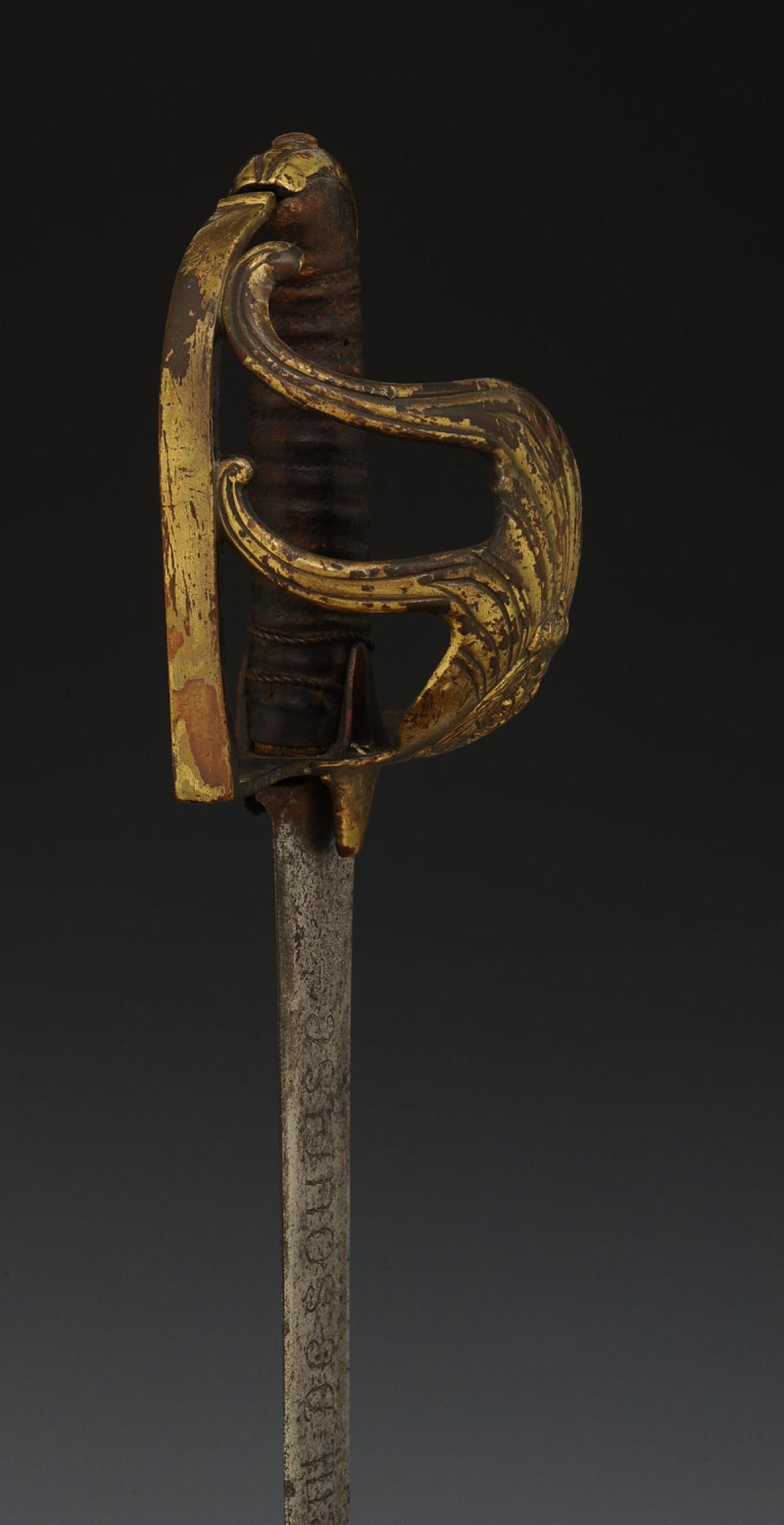 Bon état, usure à la dorure, manque le filigrane, oxydation d’usage sur la lame, sans fourreau.