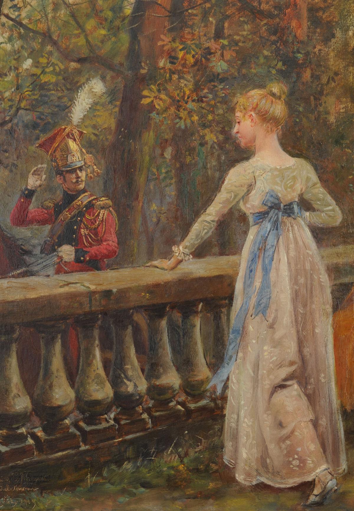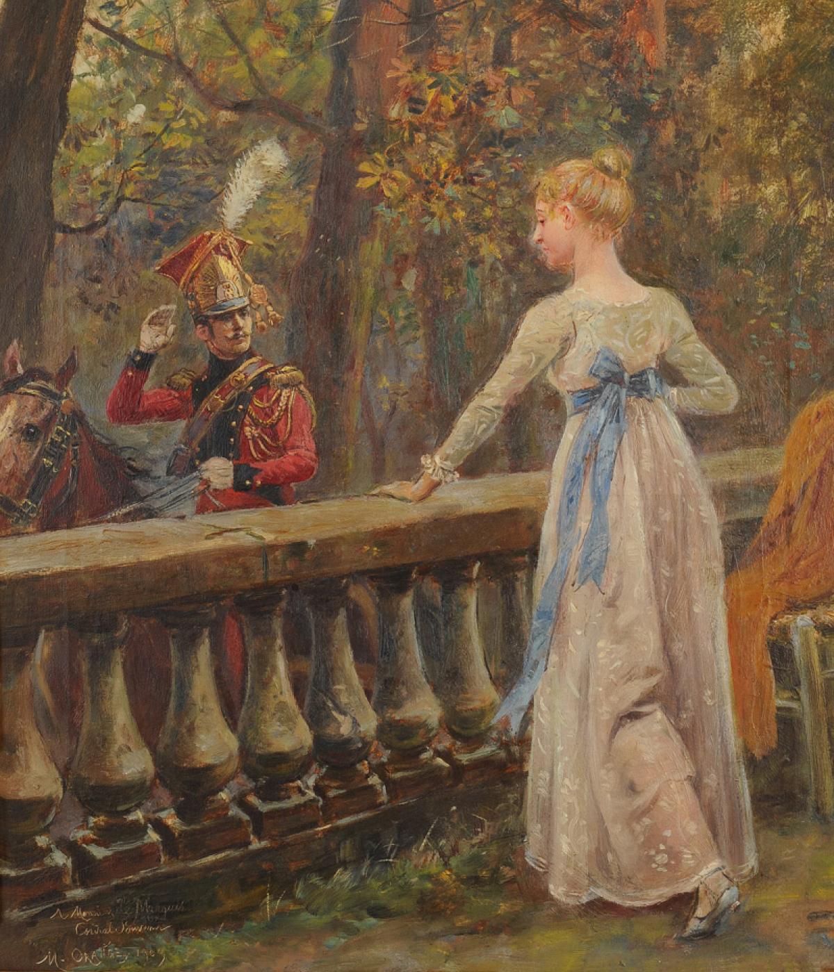 Huile sur toile, signée en bas à gauche « M ORANGE », datée 1909, avec dédicace « À Monsieur le Marquis / Cordial Souvenir ».