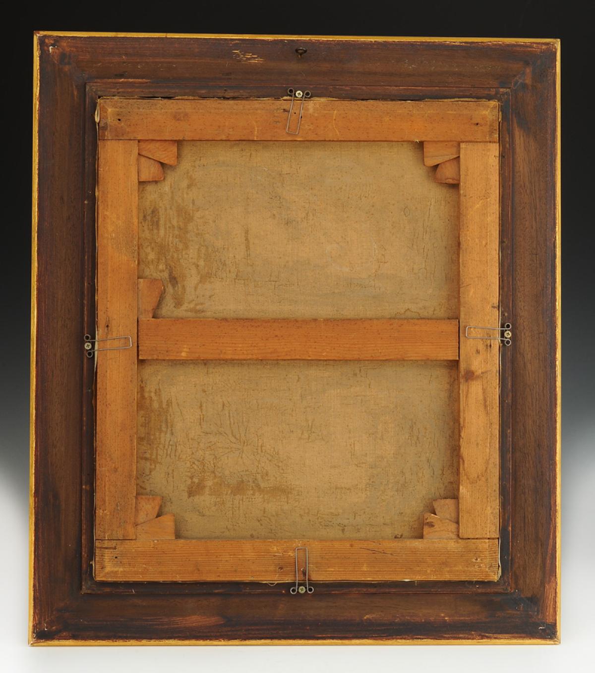Présentée dans un encadrement en bois doré, H 69 cm x 60 cm.